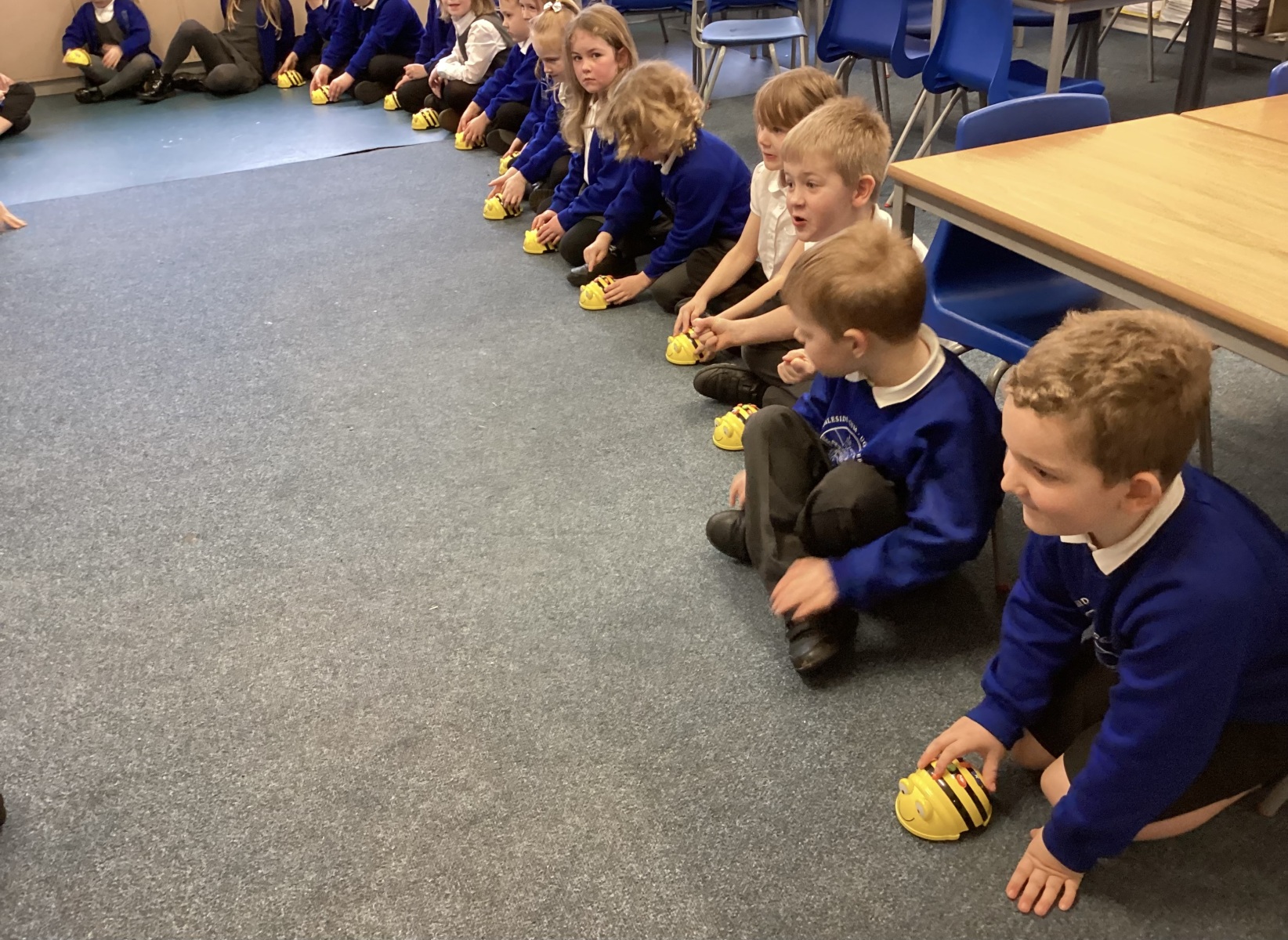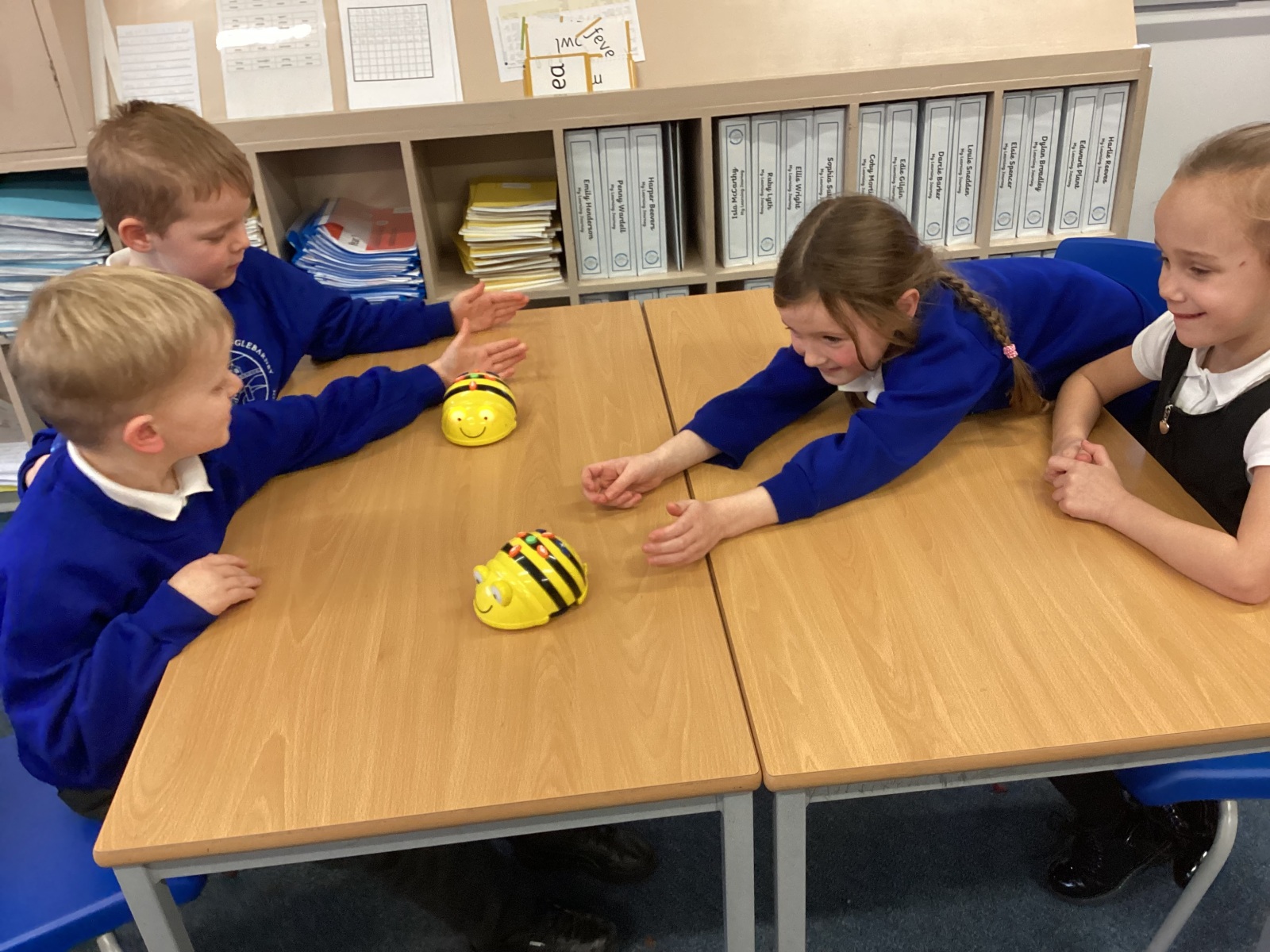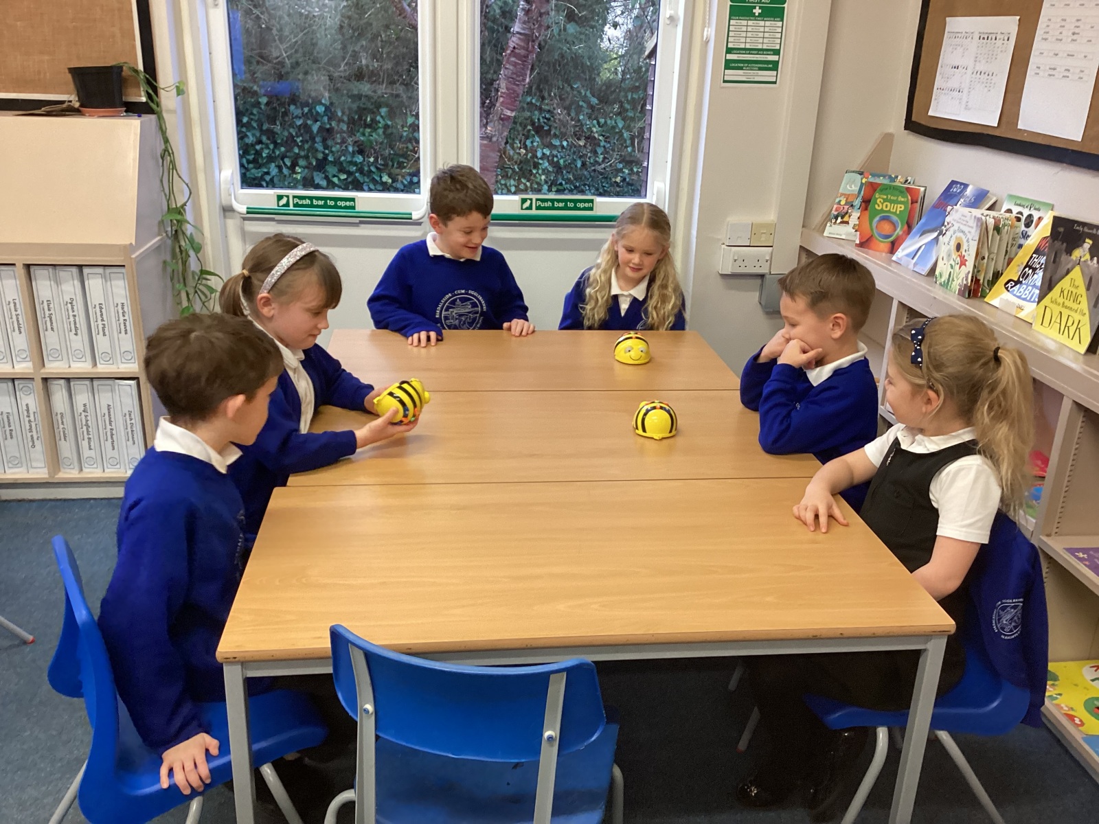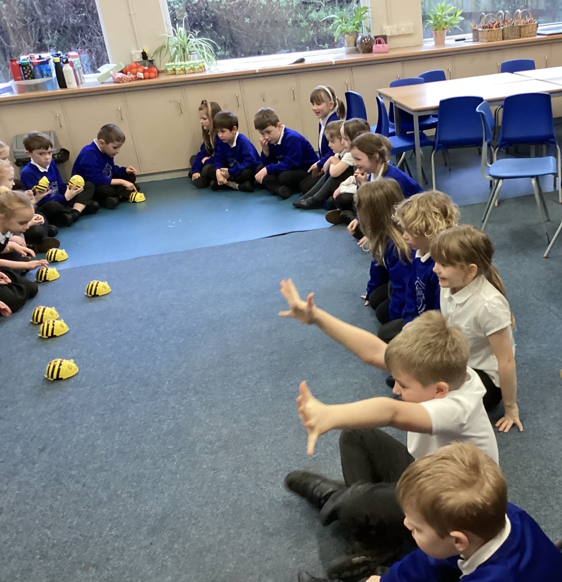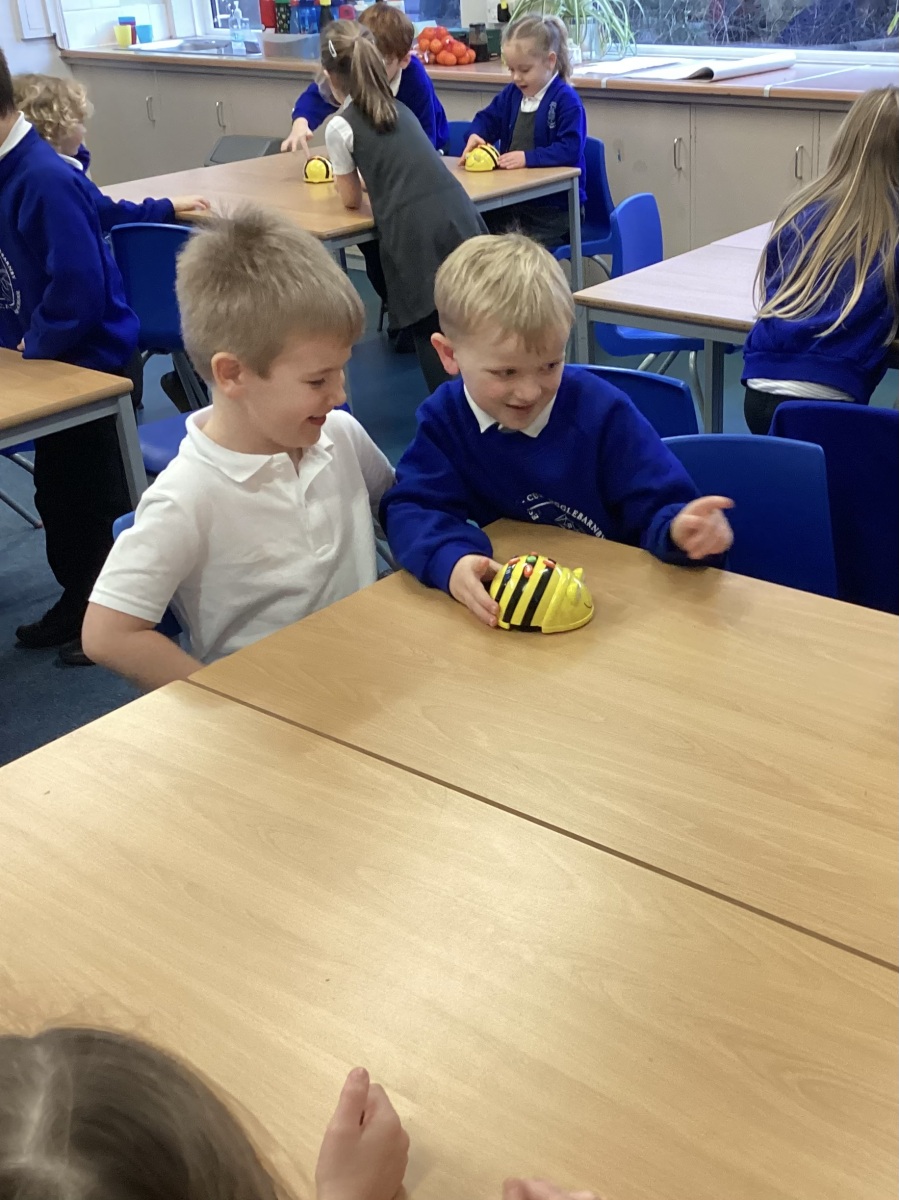 In computers we have had a great time enjoying the Beebots to develop our programming skills. We looked at the four direction commands on a Beebot and using our powers of prediction to decide on the outcome of an algorithm. We created an obstacle course in the hall for the Beebots and loved having a really long race.