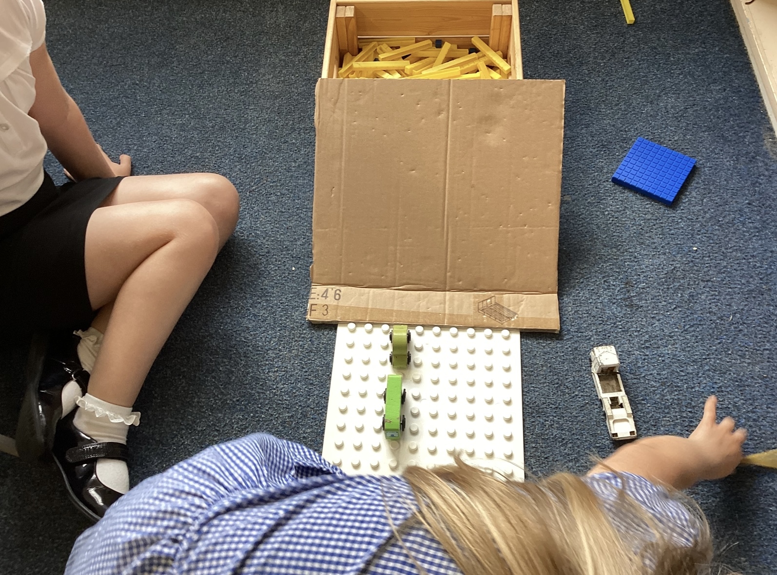 In science this week, we have been finding out about friction. What better way to do this than to explore it for ourselves. We set ab out measuring how far an object travelled down a ramp while changing the material at the bottom to test varying friction. We made sure it was a fair test by keeping all the elements the same, such as the steepness of the ramp and the same vehicle each time. We tested furry material, smooth books, the hall floor, our school jumpers, sandpaper and carpet, Numicon boards and carpet. we measured how har the vehicle travelled each time. We found that materials with higher friction slowed the vehicle down, whereas the vehicle travelled much faster over a low friction material. Learners were fascinated by the results.