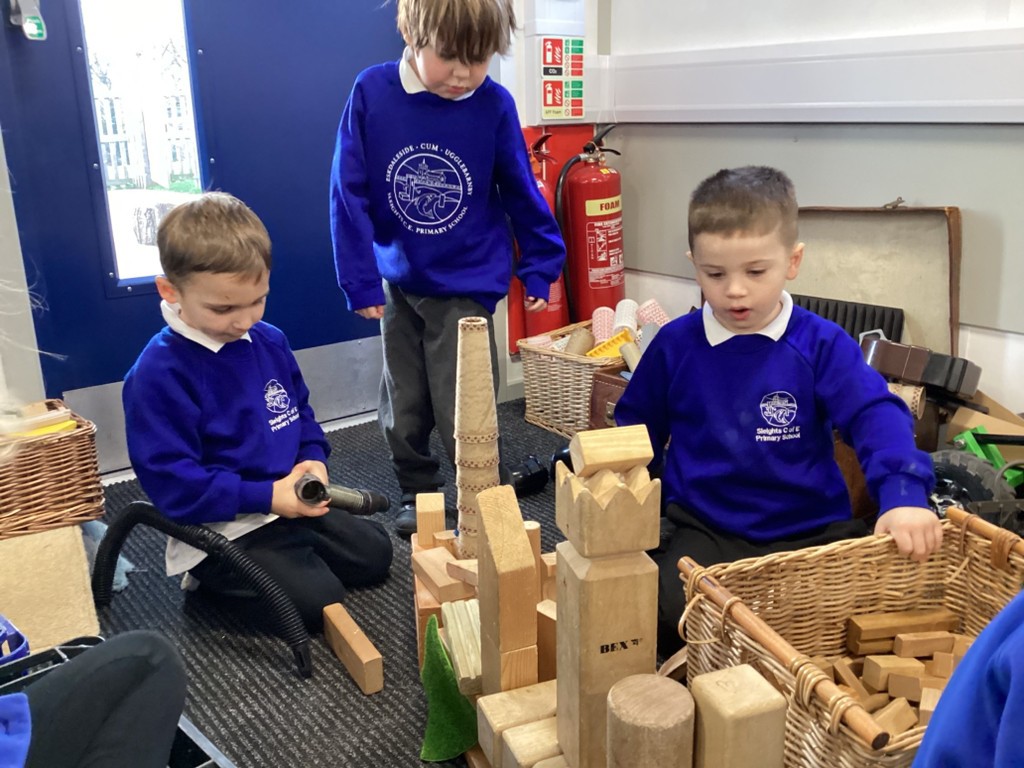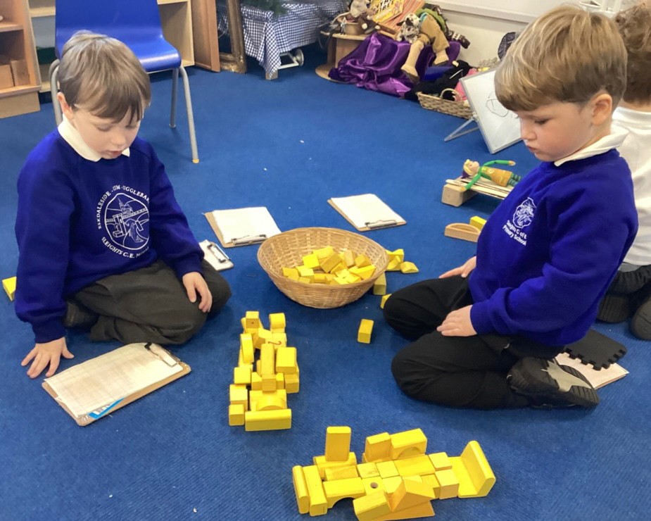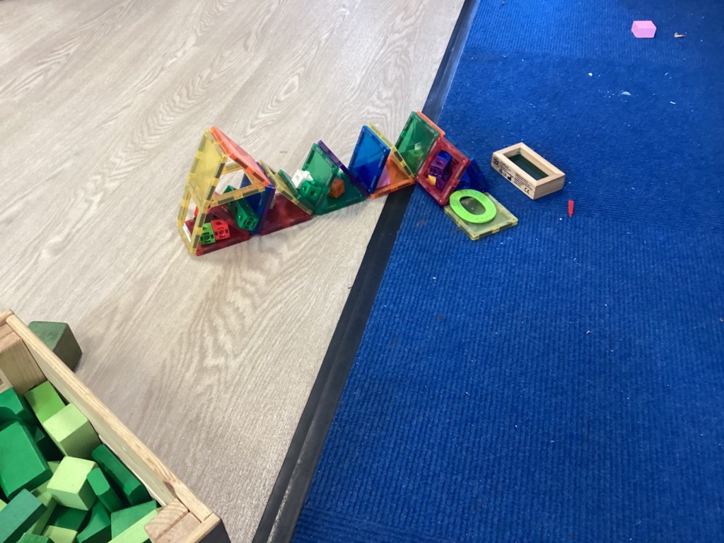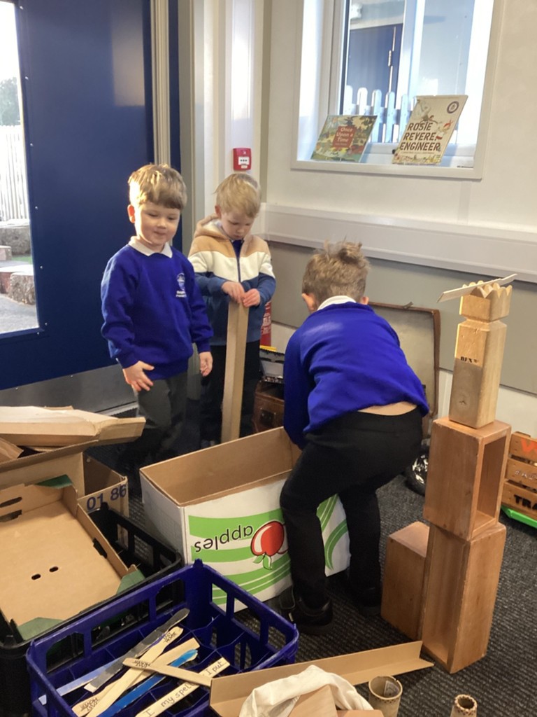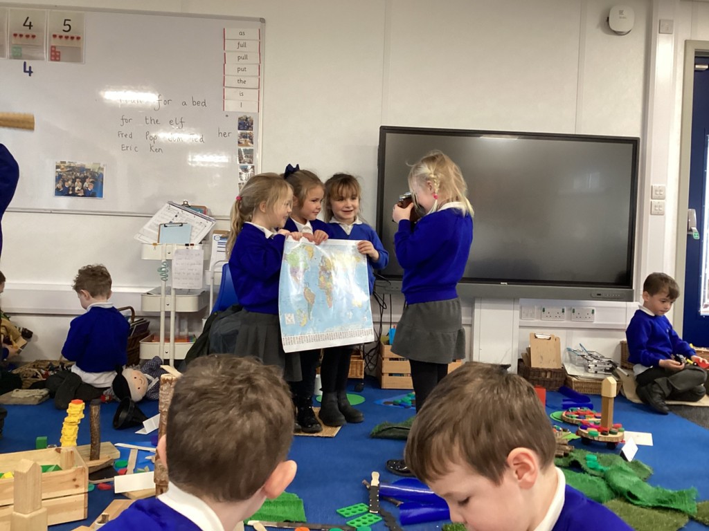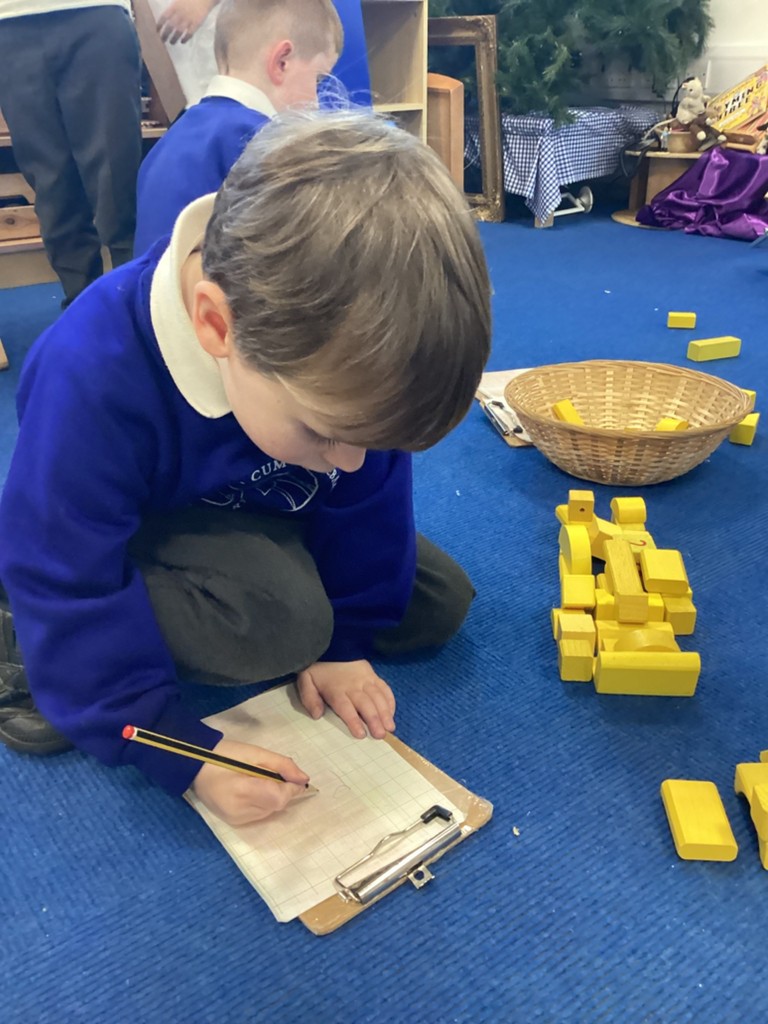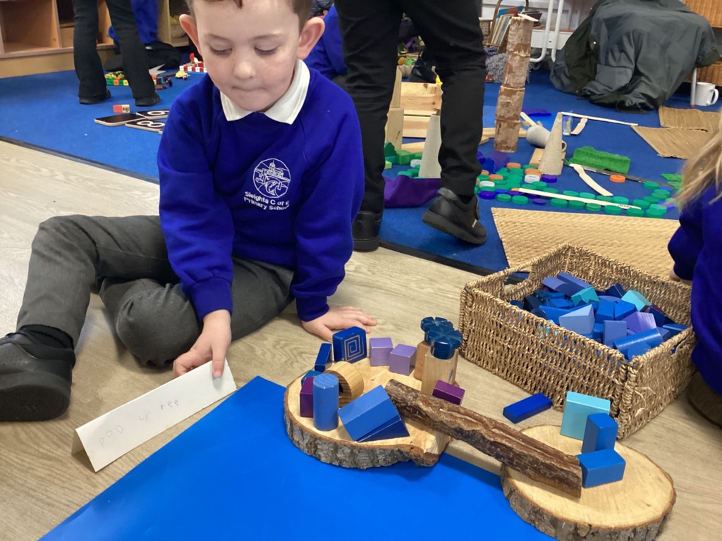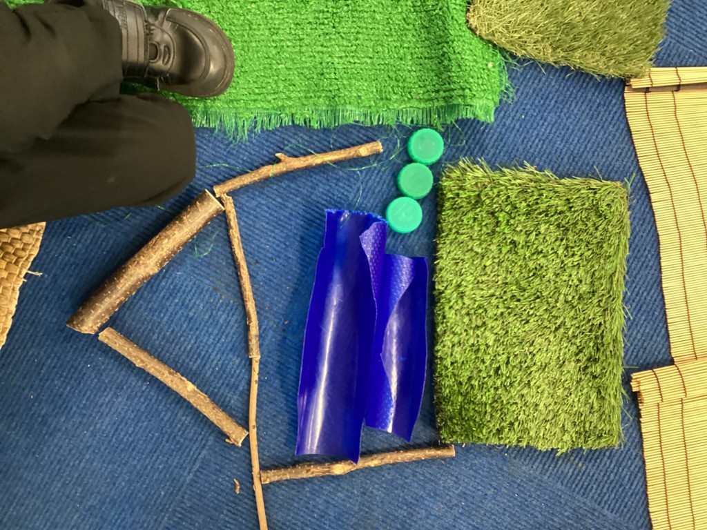The Pioneers have been making maps of the village in the story of The Elves and the Shoemaker. They were introduced to maps with a grid and compass points. We walked around the classroom with a compass noting where north was. We then build all the features from the story using a selection of loose parts. The Pioneers were then very keen to add labels.