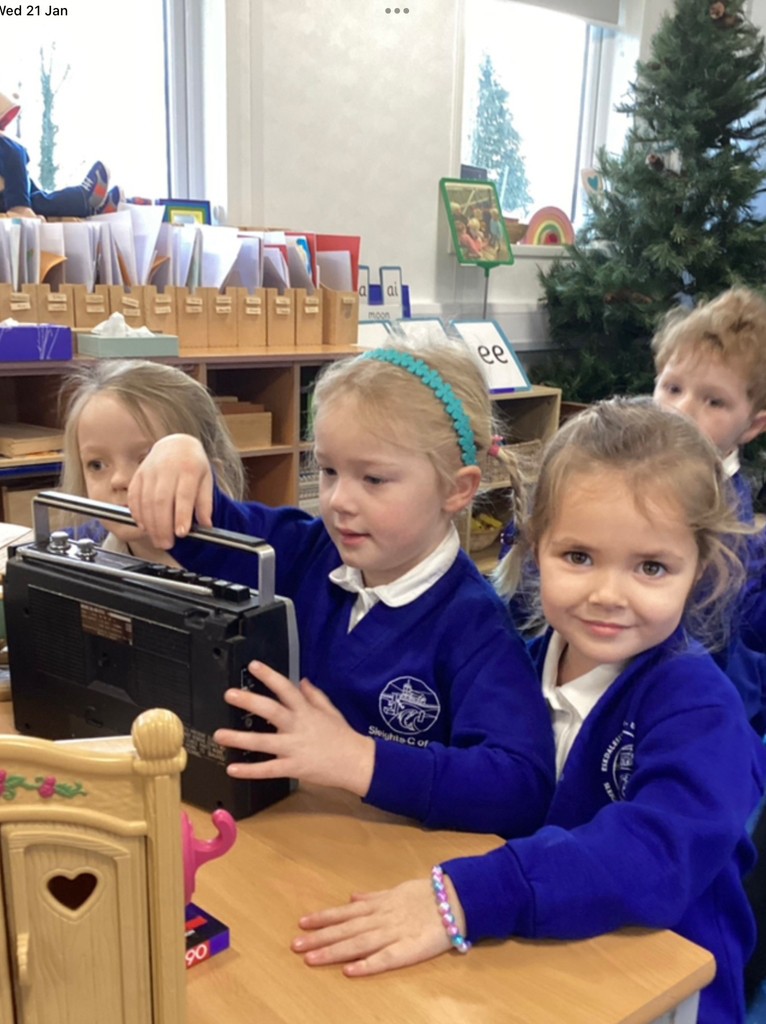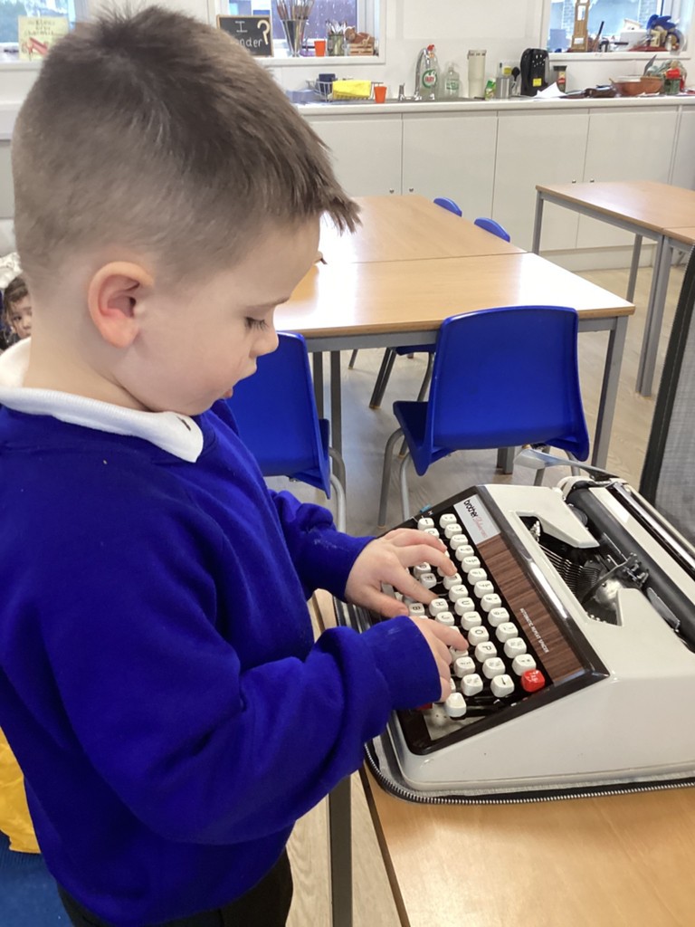 The Pioneers continue to explore a range of gadgets from the past. We discussed the functions of a smart phone and then looked at all the equipment needed to do this-a record player, a cassette player, a CD player and a range of cameras. The elves brought a typewriter and this was a very exciting addition to the classroom. The Pioneers were able to take the top off and look inside noticing all the levers and moving parts.