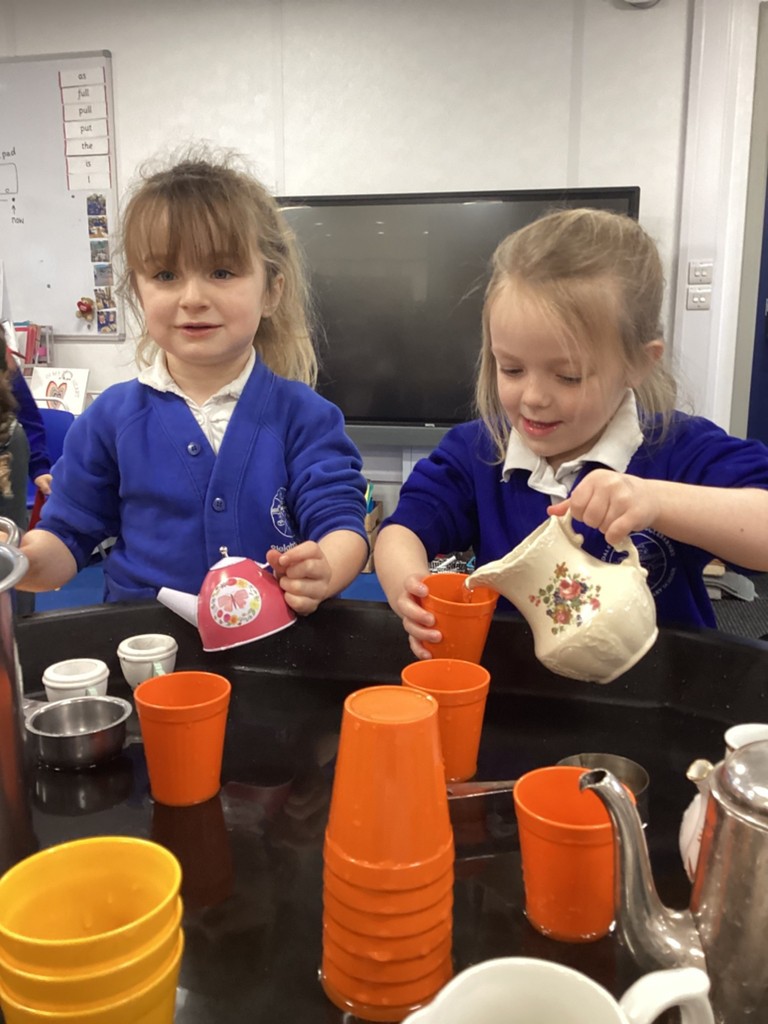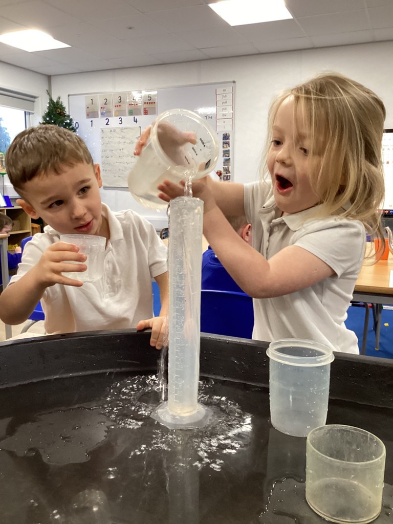 Our elves had a mug of coffee and a glass of milk and a can of pop. These all featured in our writing and our reading and maths. We explored capacity using a selection of jugs, pots and cups. Much fun was had while making comparisons and recording results.