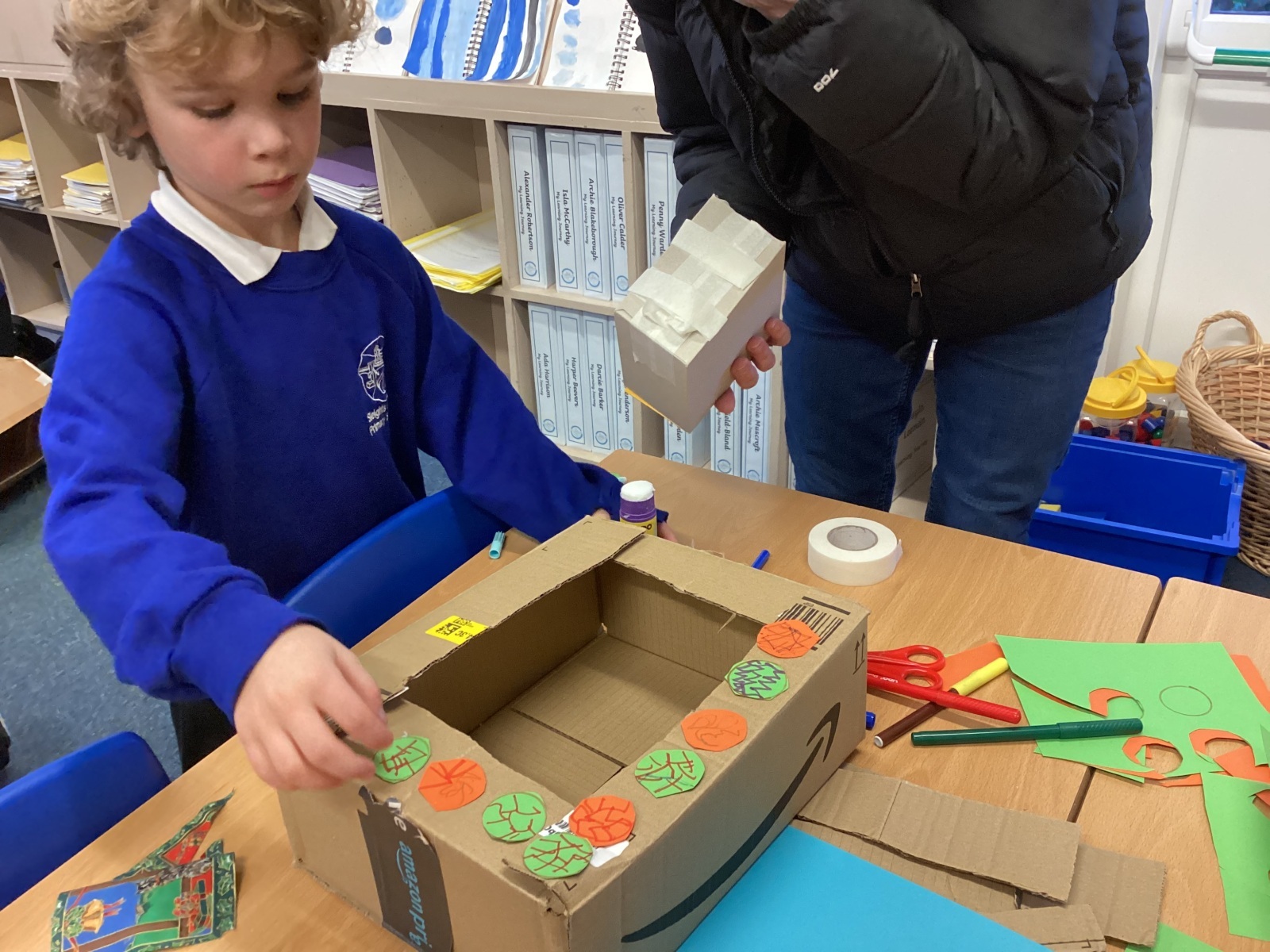 On Wednesday, families filled Learners class (and so did boxes). We used the book ‘It’s Not a Box’ by Antoinette Portis to inspire us and used our imagination to create something wonderful using many sized boxes and some handy resources. We had the BEST time, we worked together and our creations were sensational! We will be using these creations to inspire our instruction writing in English lessons over the next weeks.