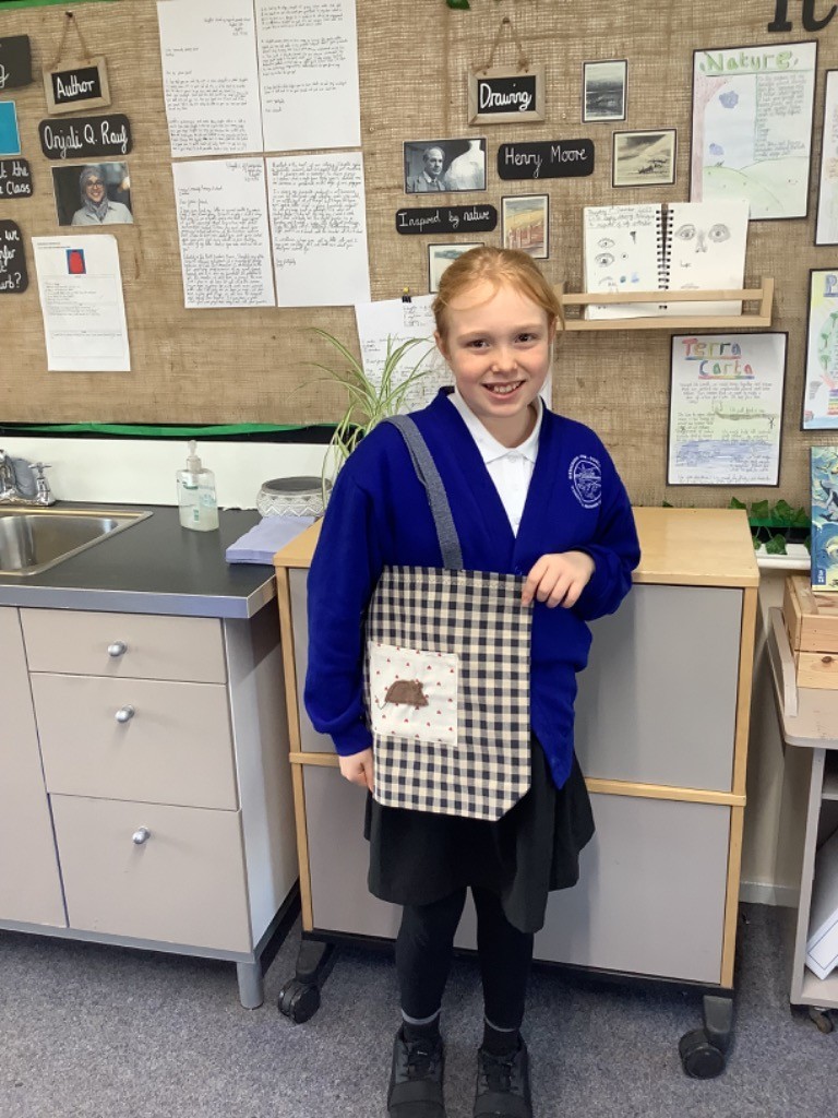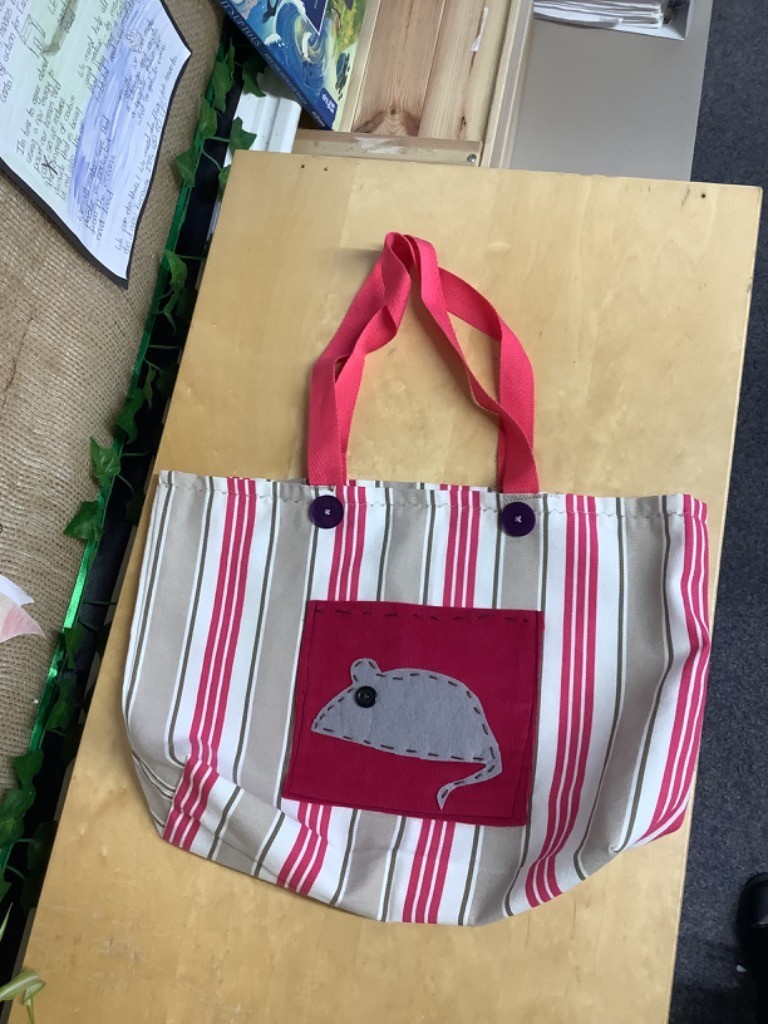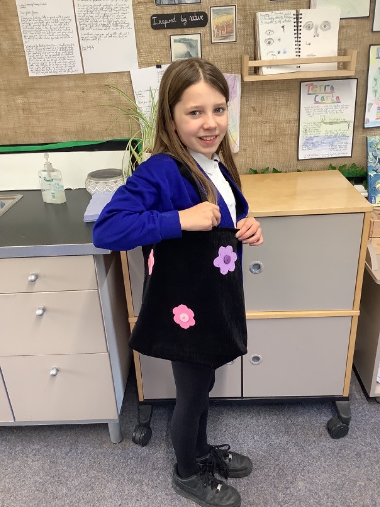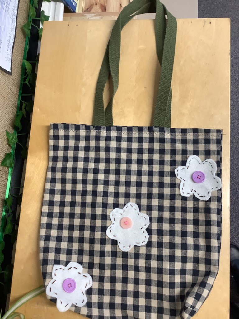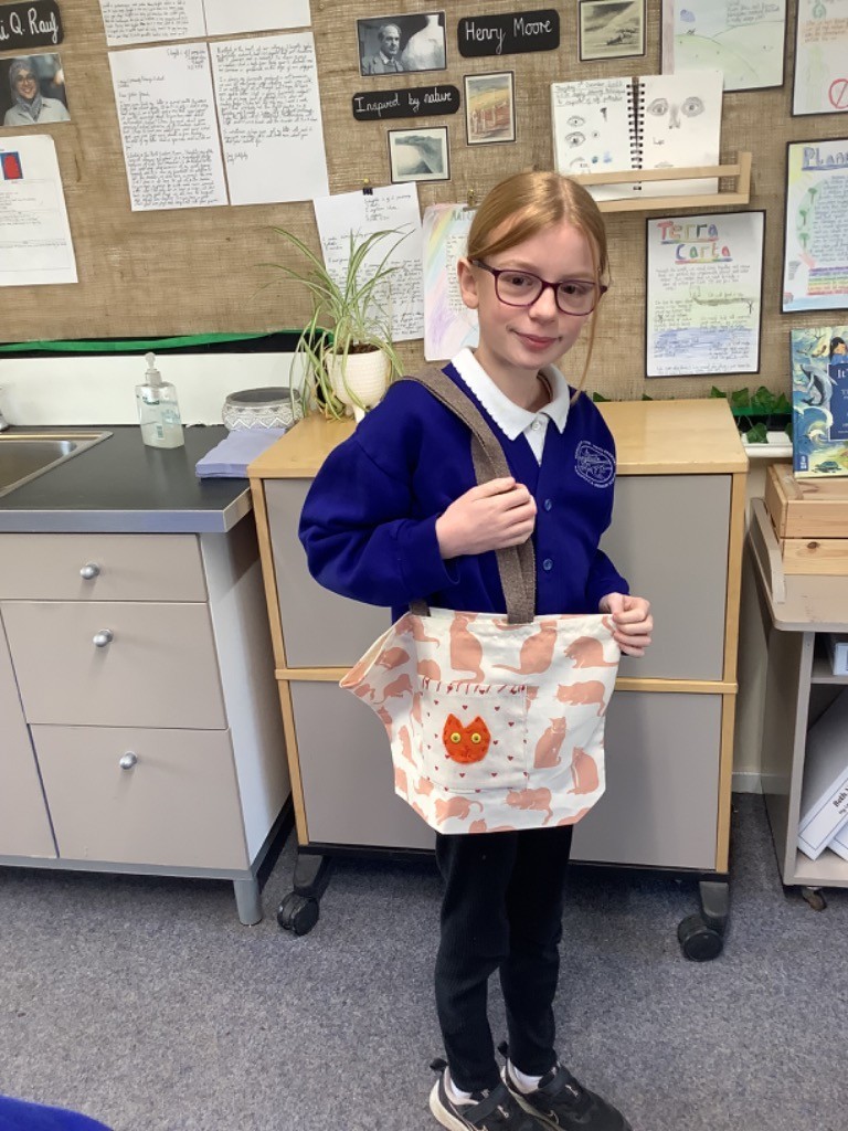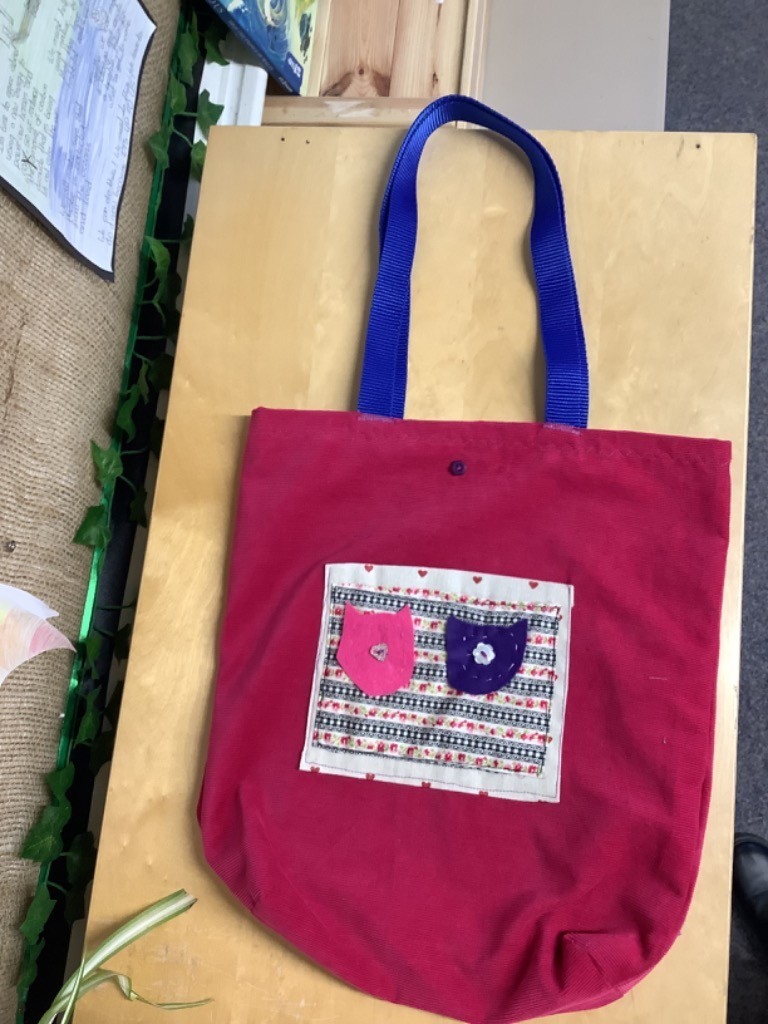 In DT, the children have designed and created their own bags. They have used templates, cut fabric and used pins to secure it onto another piece of material. To complete their bags, Leaders used both hand-stitching and a sewing machine. The finished bags looks incredible!