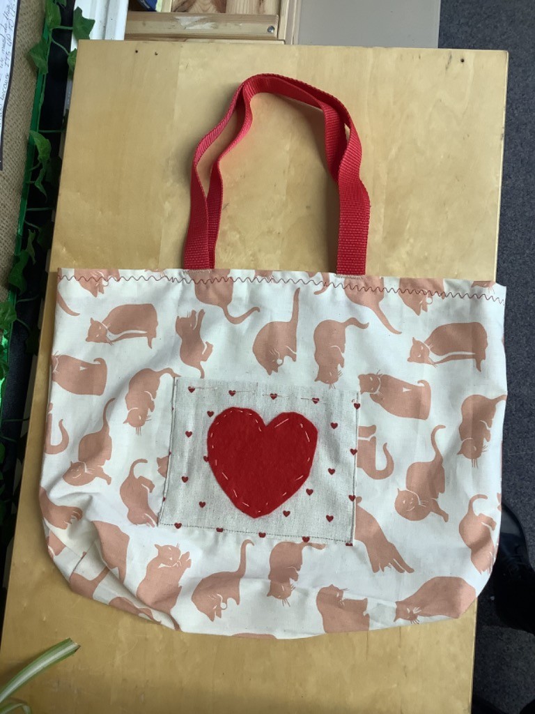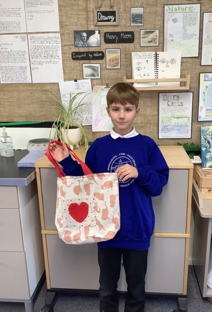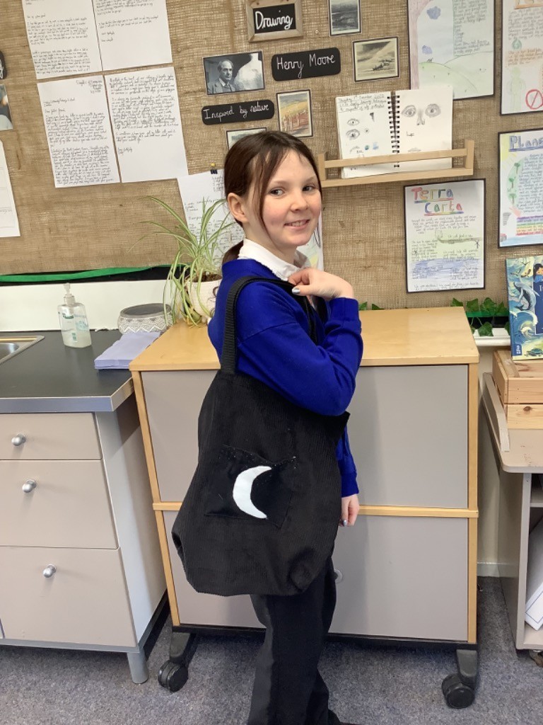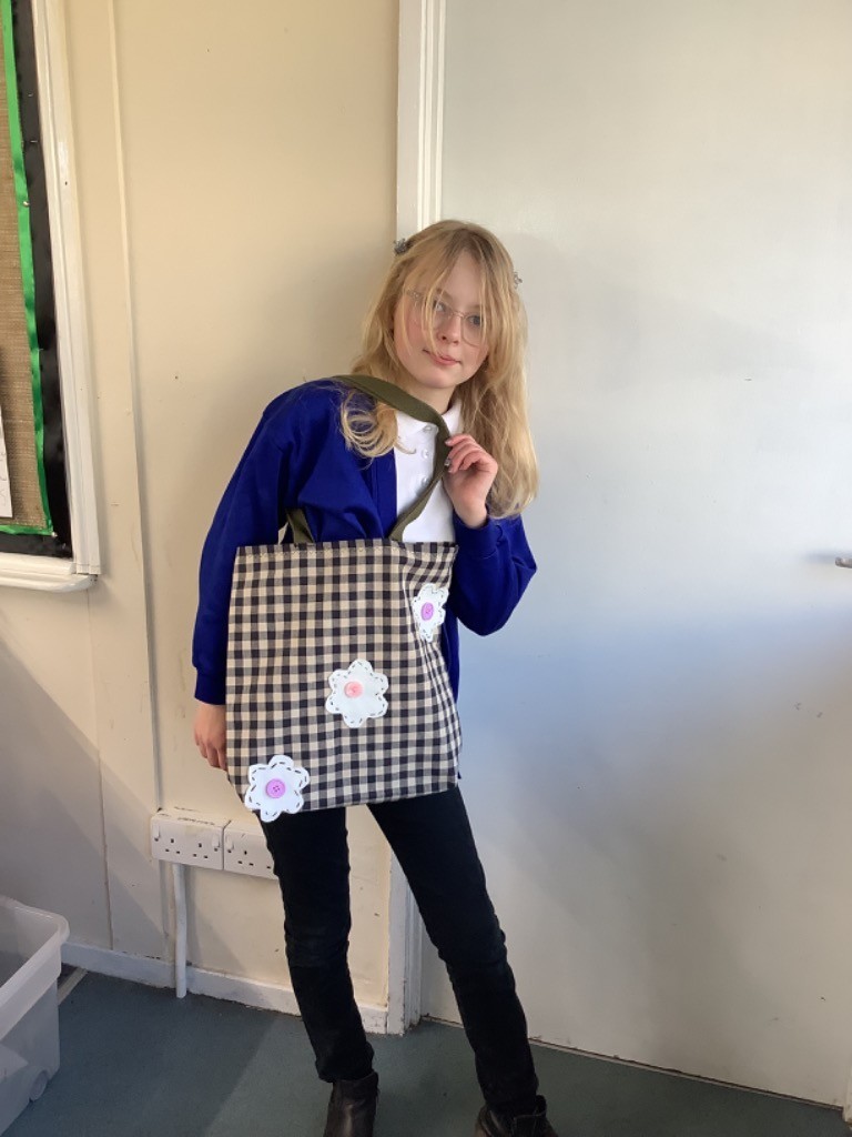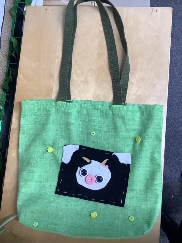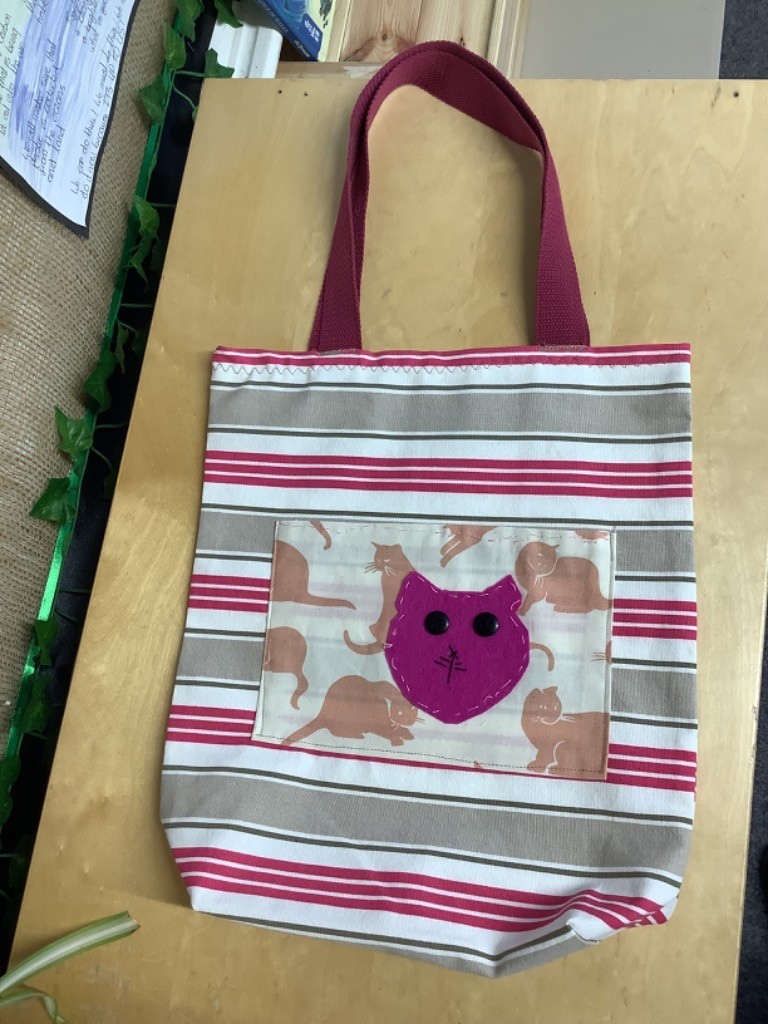 In DT, the children have designed and created their own bags. They have used templates, cut fabric and used pins to secure it onto another piece of material. To complete their bags, Leaders used both hand-stitching and a sewing machine. The finished bags looks incredible!