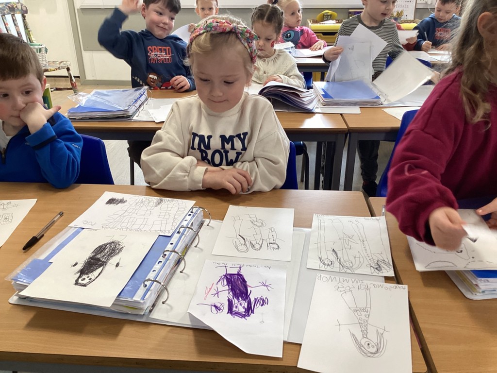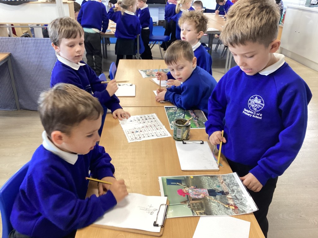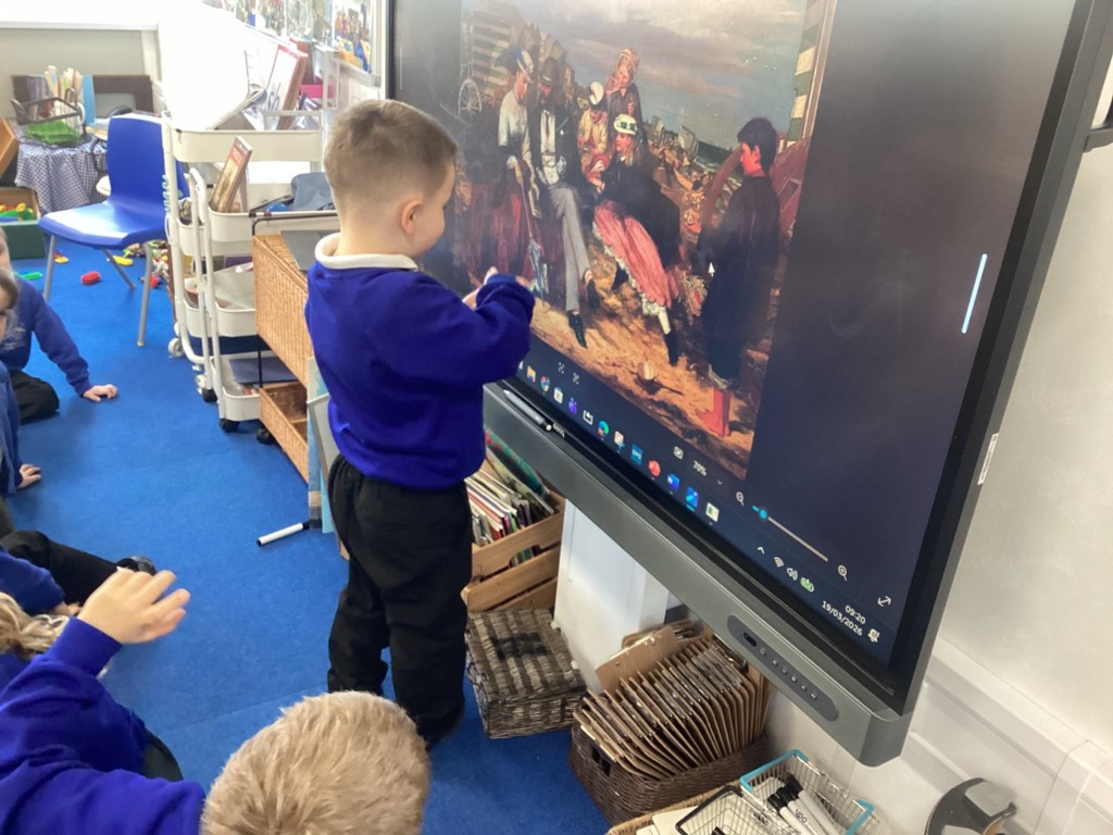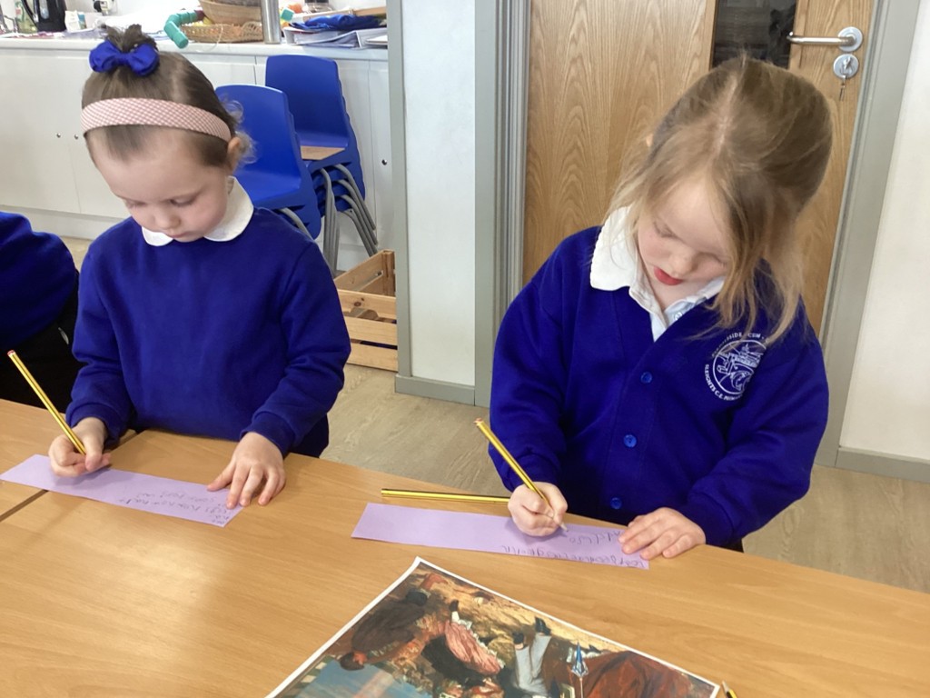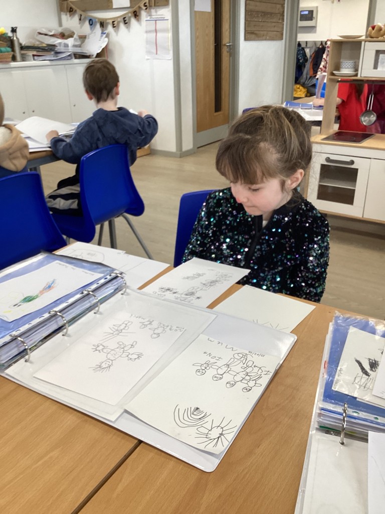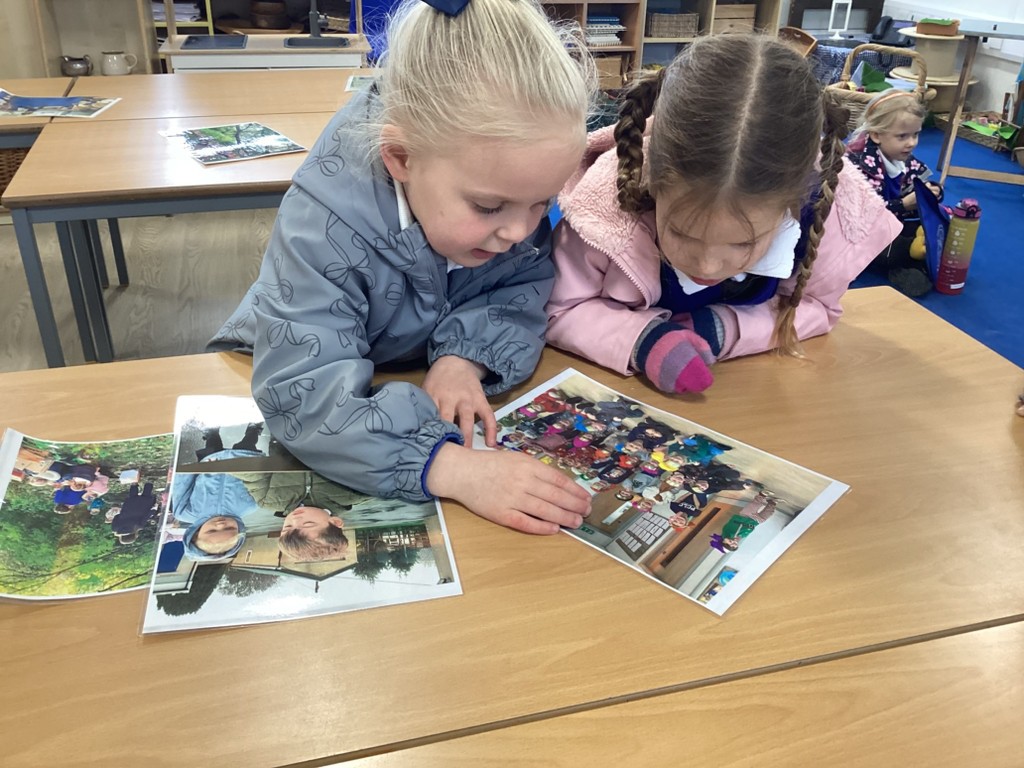 The Pioneers have been focussing in on detail this week and looking for clues, what is the same and what is different. This has helped them to build up a timeline of the past-our past. We looked at photographs of us over the time we have spent together from our transfer days in July to now. It was fascinating to see what has stayed the same and what has changed. We then looked through our files taking particular interest in our drawings. We noticed that these were all dated and then looked at some older paintings and portraits, noting the date and how it was written. This sparked discussion about the passing of time, in months and years and we were able to place these on our timeline.