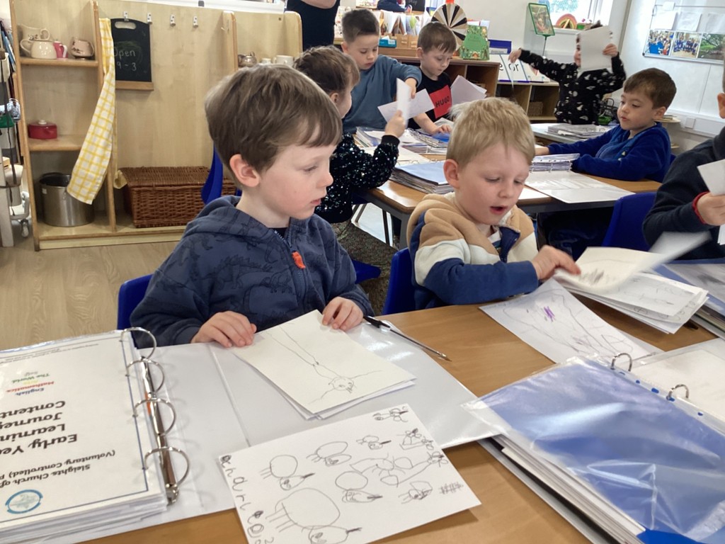 We begin this week by reading a traditional tale, The Elves and the Shoemaker.An elf arrived in the classroom and he left us a letter to read. He was there to help the little old man who made shoes in the shop. The Pioneers handled artefacts from the past, examining shoe lasts, leather and old part made shoes. They took a close look at a very old sewing machine and noticed the levers and the cogs that make it work. We discussed manmade and natural materials, learning where the leather comes from and the tools required in the workshop. We discussed where the shop was and what it was like to live in a flat. The work gave us so many new words to use in our play in the Cobbler’s Shop.