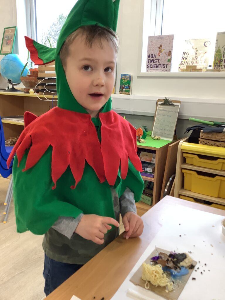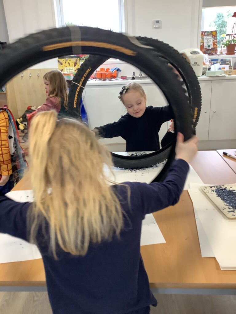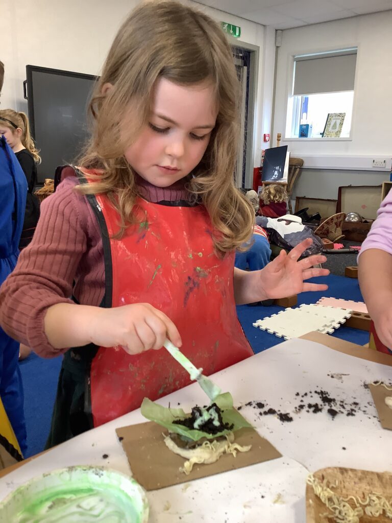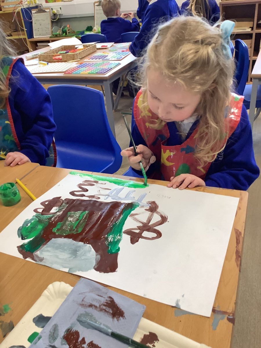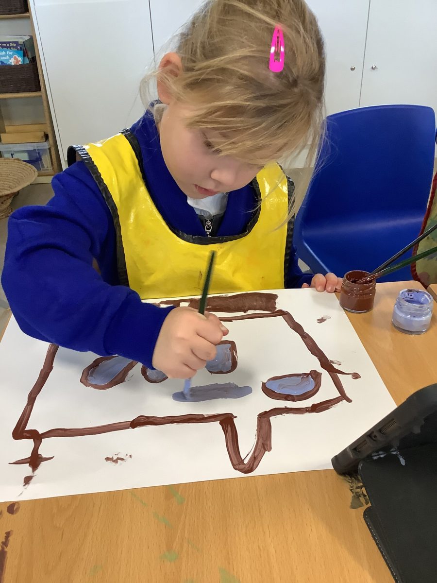 On Wednesday, we braved the forest. Dodging the drizzle, we made it down there and collected leaves and sticks to print with in art later in the week. The forest was muddy, but we were dressed accordingly and moved around sensibly!