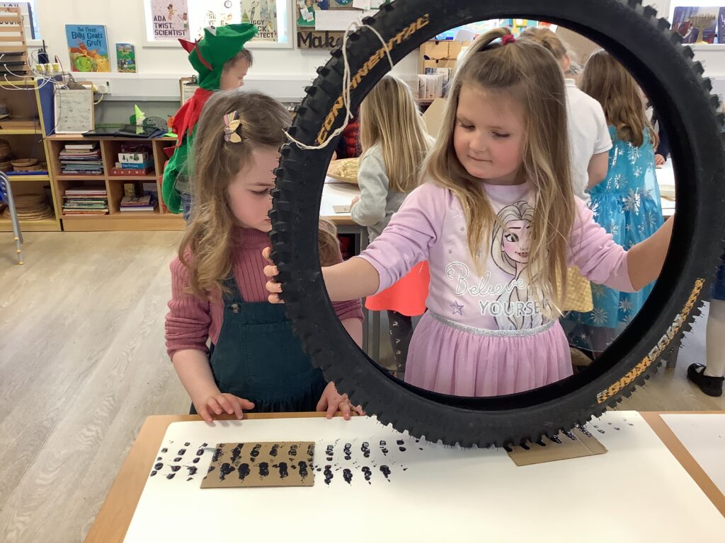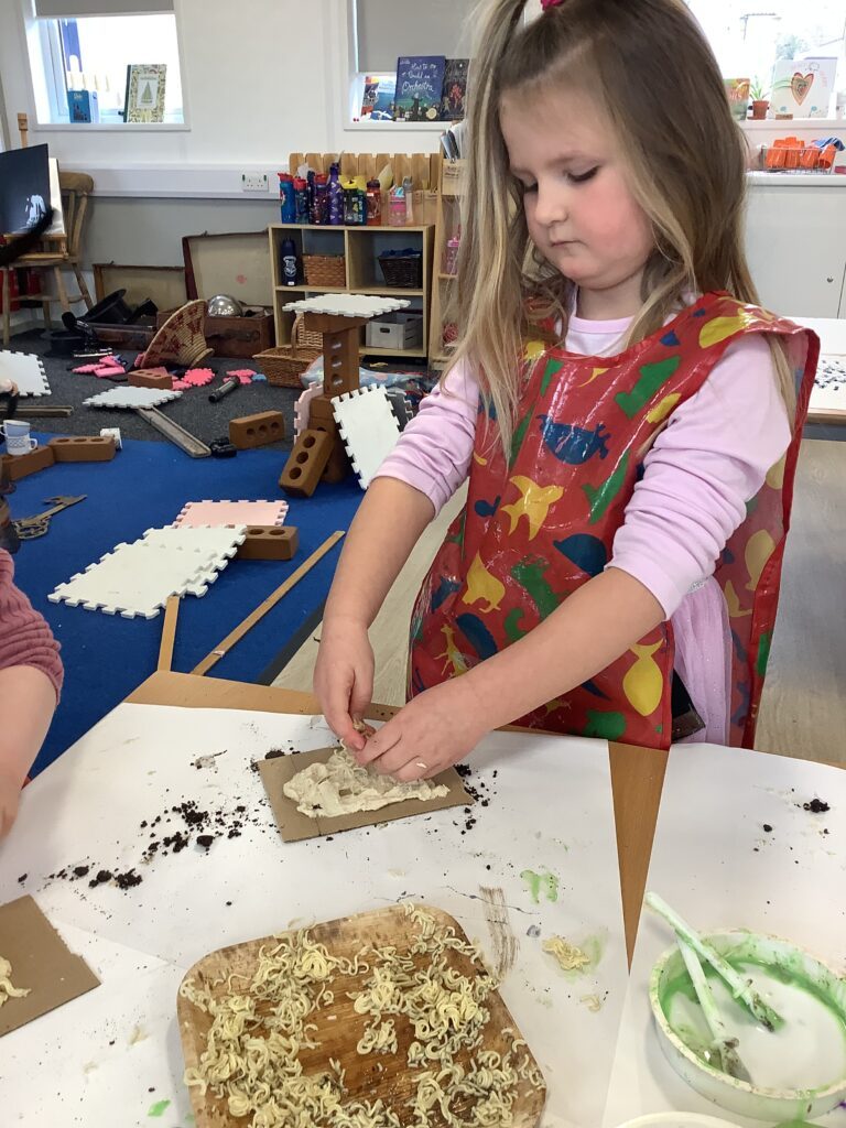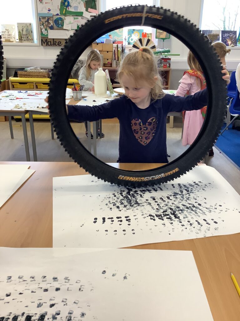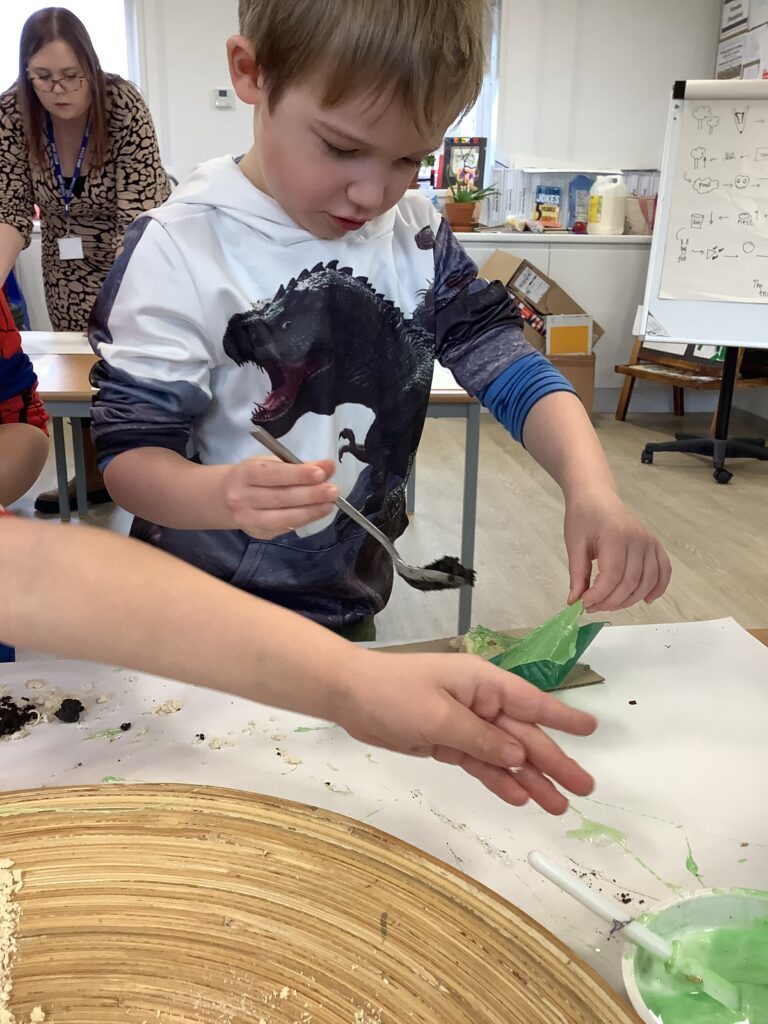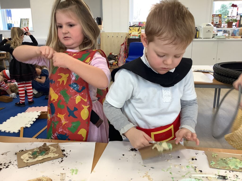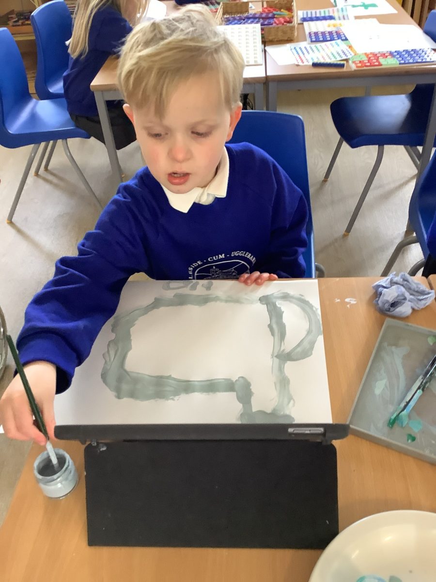 On Wednesday, we braved the forest. Dodging the drizzle, we made it down there and collected leaves and sticks to print with in art later in the week. The forest was muddy, but we were dressed accordingly and moved around sensibly!
