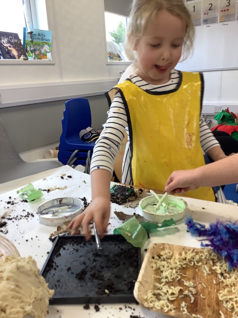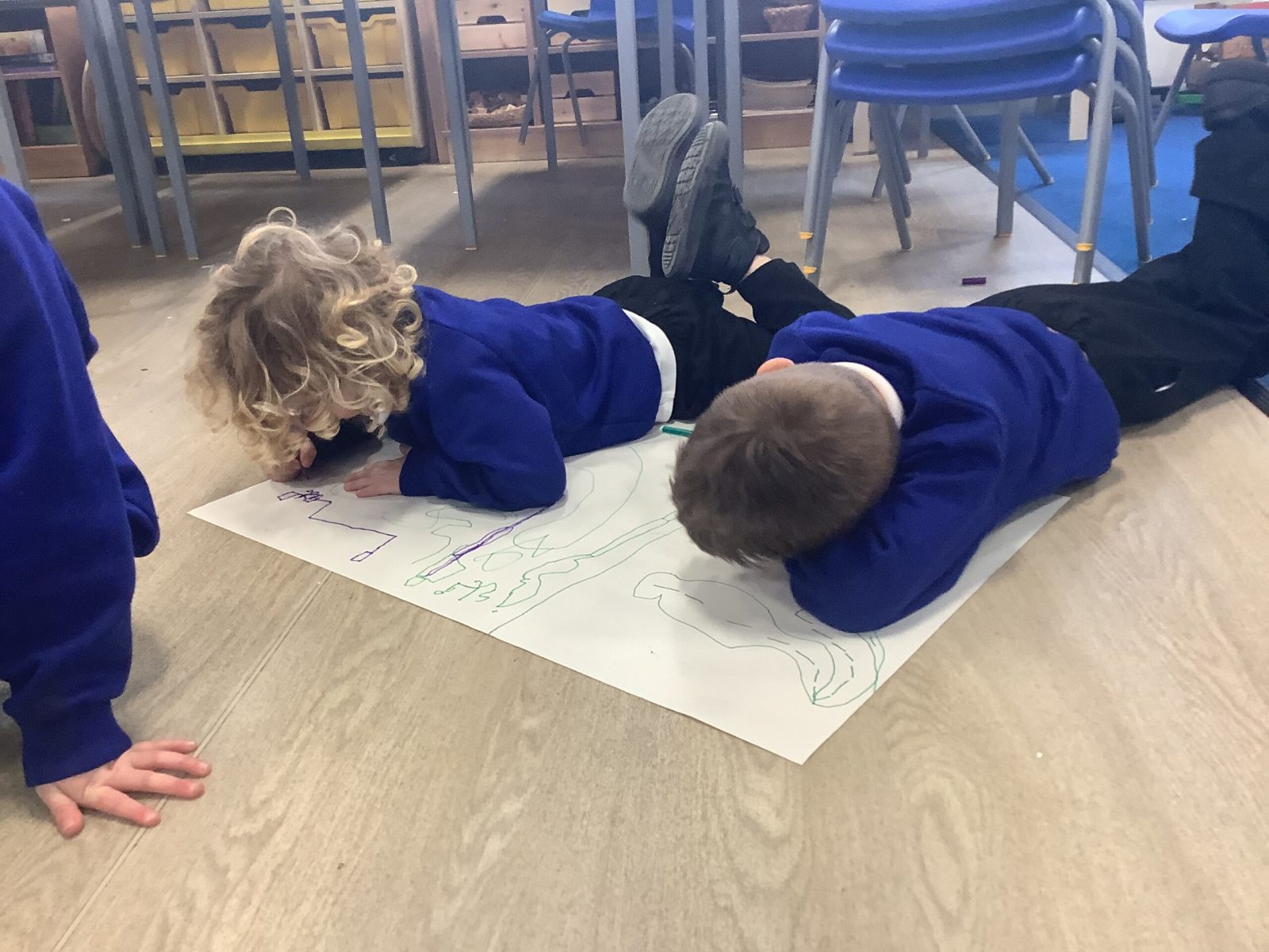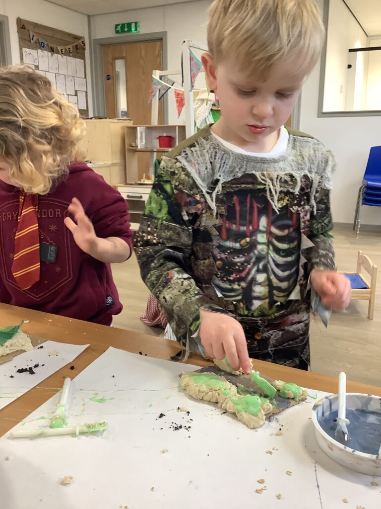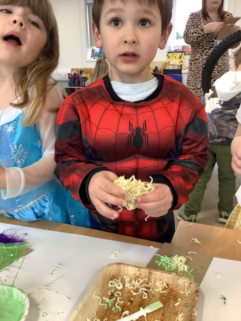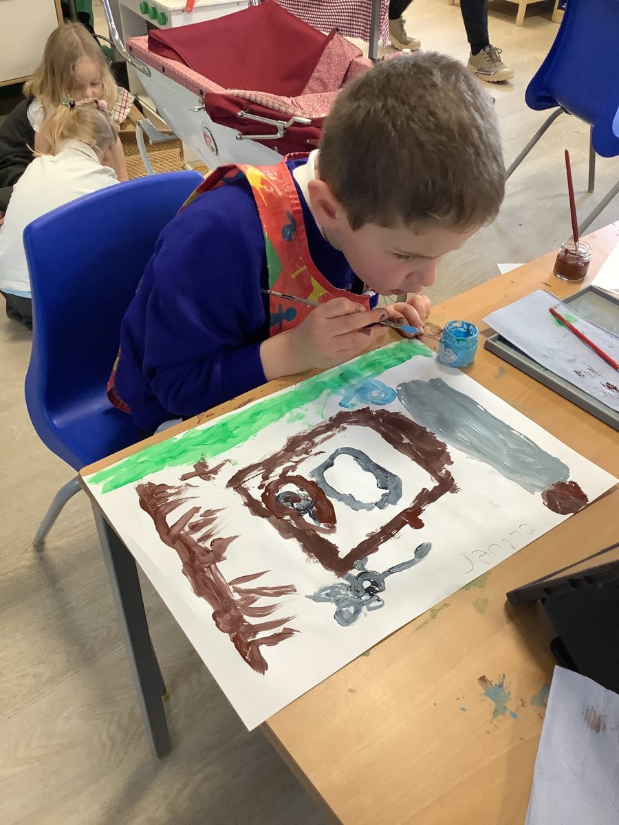 On Wednesday, we braved the forest. Dodging the drizzle, we made it down there and collected leaves and sticks to print with in art later in the week. The forest was muddy, but we were dressed accordingly and moved around sensibly!
