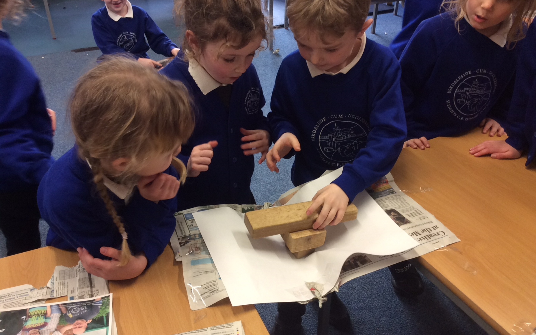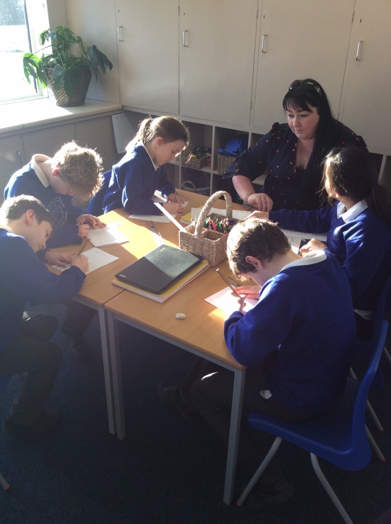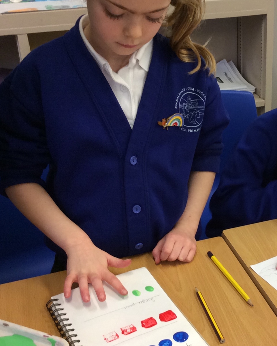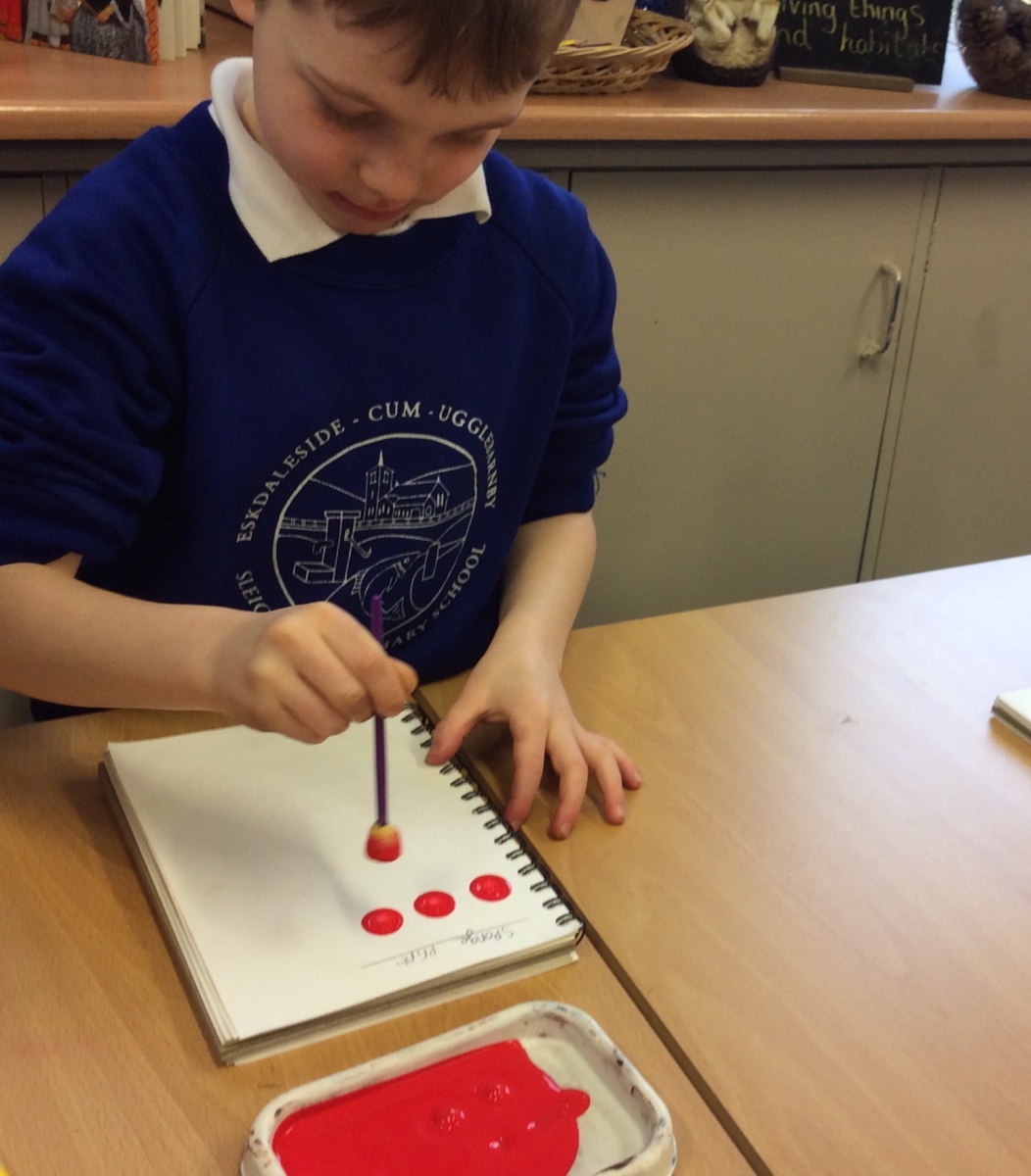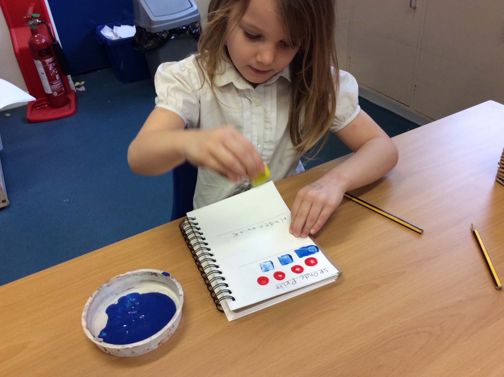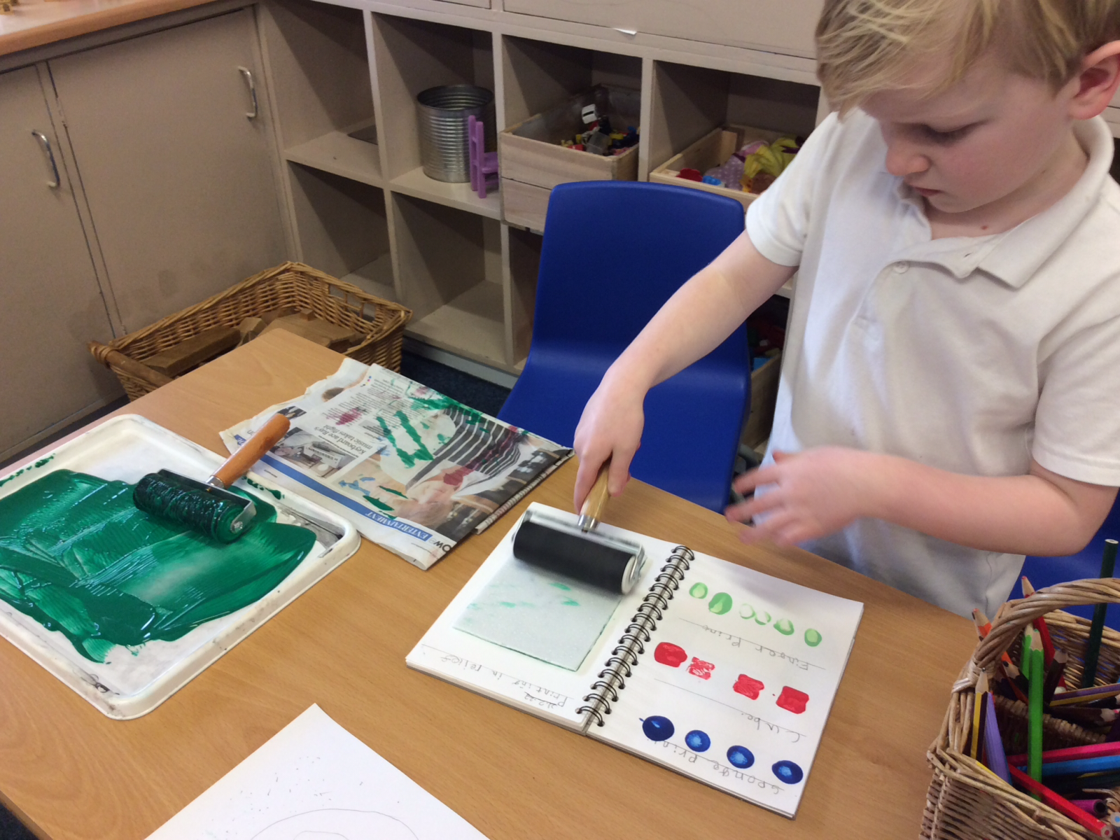 On Monday, we explored printing in relief in Art. We drew our design on paper first, then etched our design onto a polystyrene tile. Using a roller we applied paint and printed onto our sketch books. We were amazed and excited to see the results.