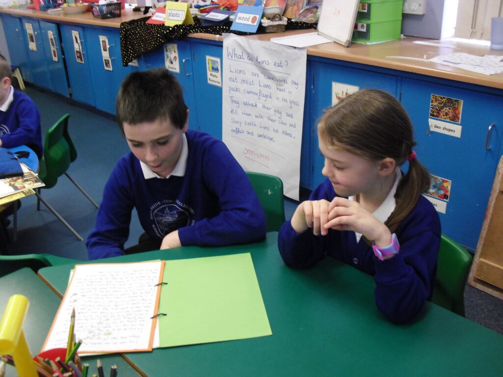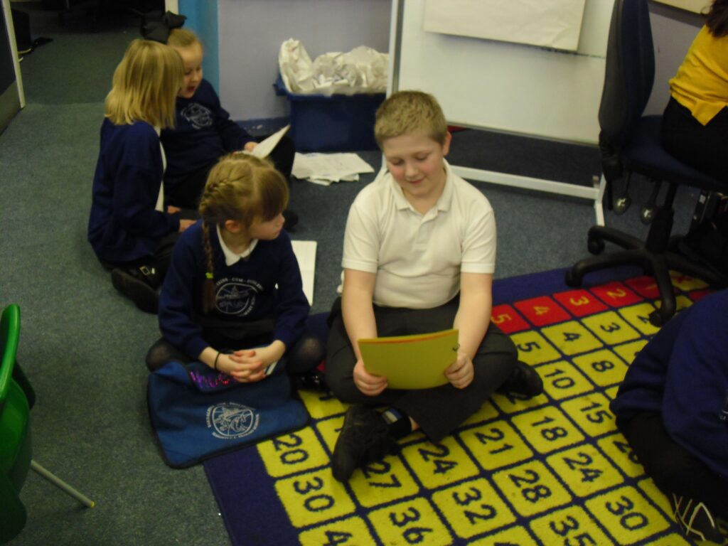 Hi there, this is Katie, Jack and Ben from the Leaders’ class. This week we have been thinking of ideas for our non -chronological report attractions. We all went into the school forest to write a practise report, get ideas and have fun. Also in our class, in numeracy we’ve been rounding numbers to the nearest ten, hundred and thousand, including decimal places. Apart from maths and English lessons, we’ve had swimming, P.E and dance –taught by Hannah Verity. You may have heard about the open afternoon, where parents came at 2.30 pm to have a look at their child’s work.