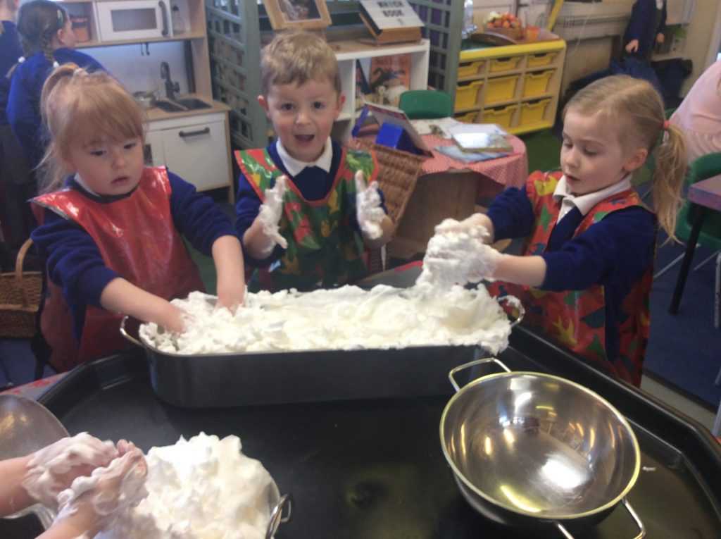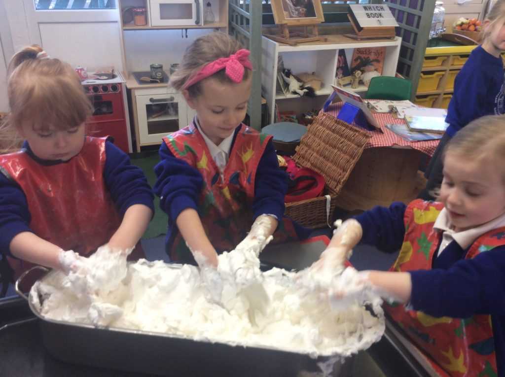 Following on from our trip to the forest,the badger came and ate all the sandwiches we had made. He left us a message asking us to make some more and write him a list of all the things we used. This caused a lot of excitement and a huge desire to write. Some spent the whole morning writing for the badger,filling two pages of ingredients. Some constructed their own sentences asking for help when needed.