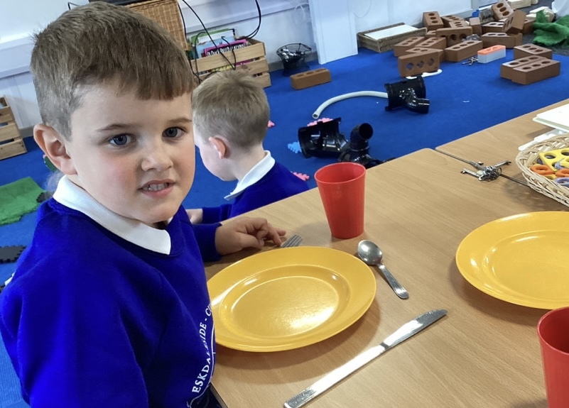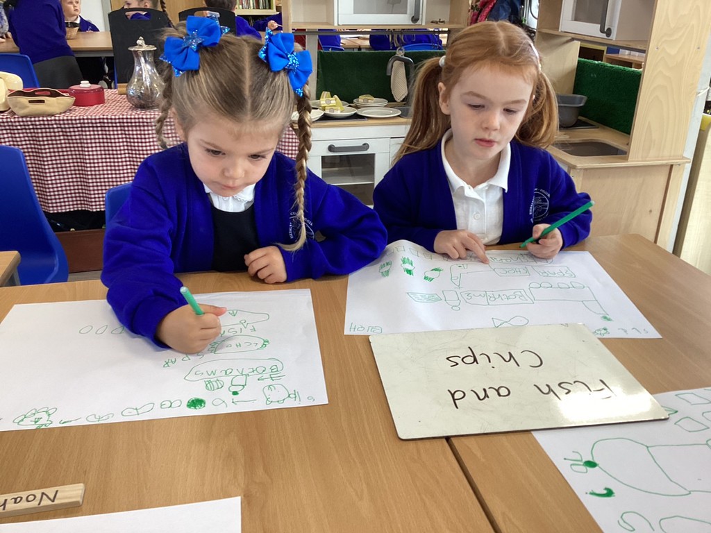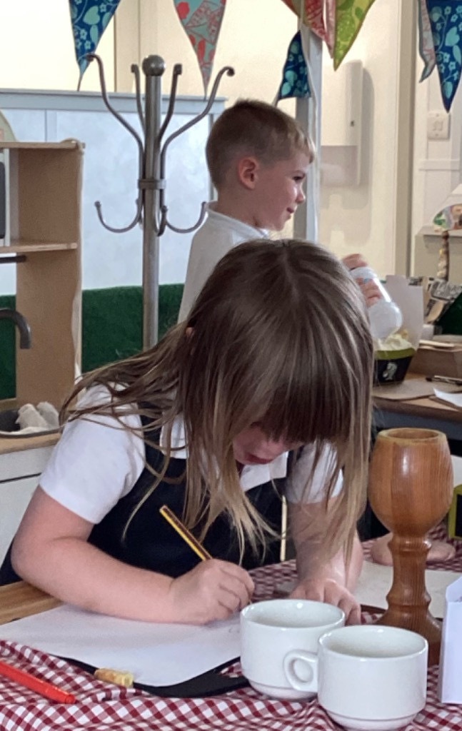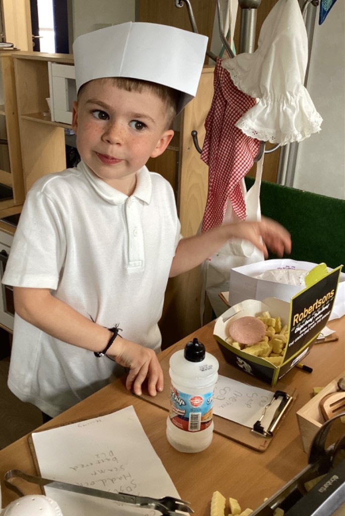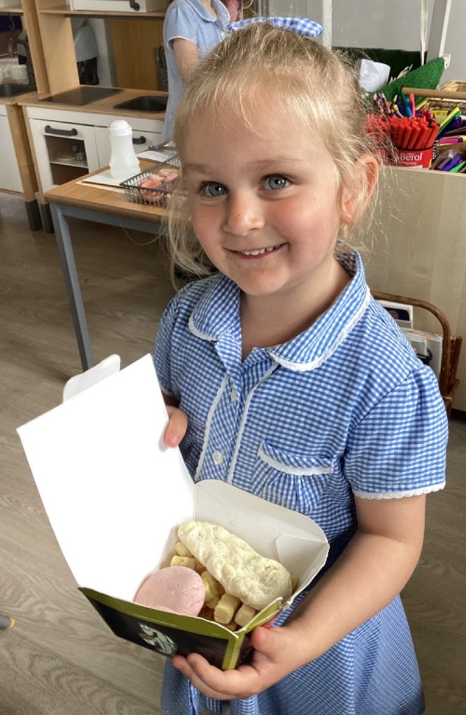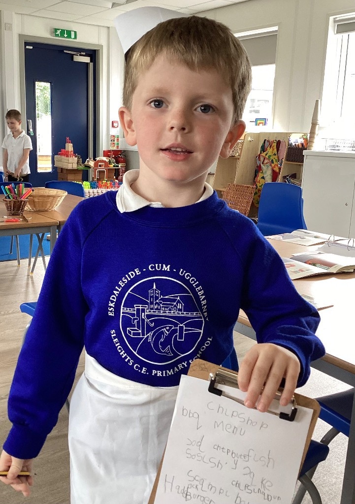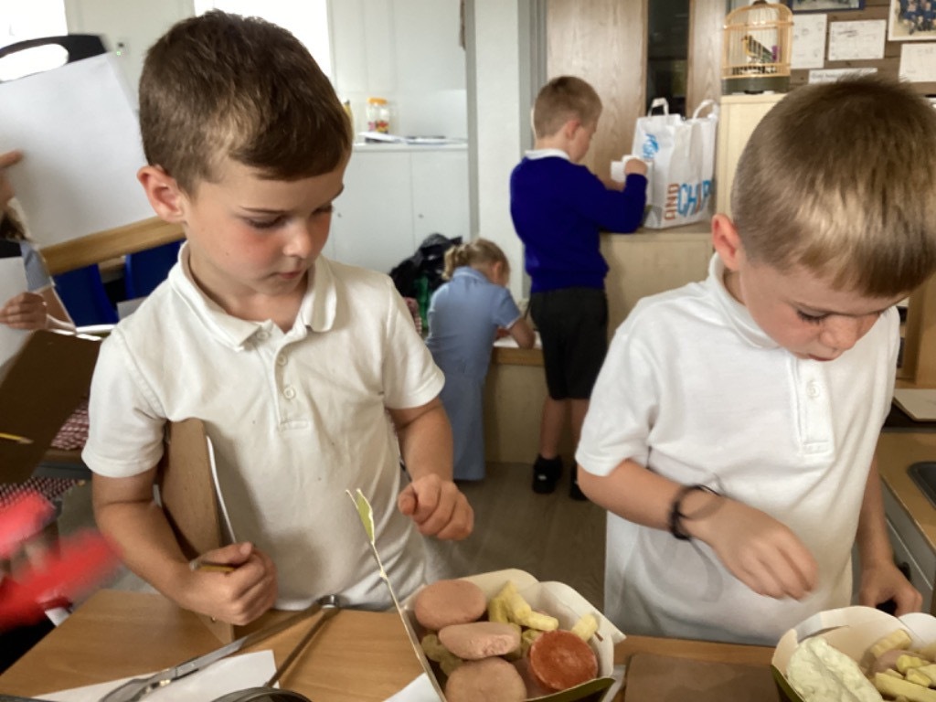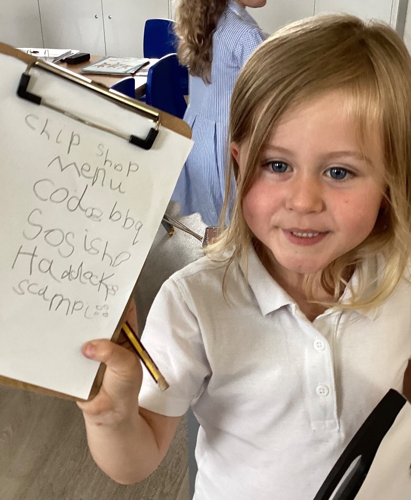 The Chip Shop opened in the classroom this week as we investigate the food chain from the sea to the plate. The Pioneers wrote their own menus and receipts for food and took orders in from customers who arrived. The customers were met and greeted with a ,”Good Morning Madam. How can I help you?”
