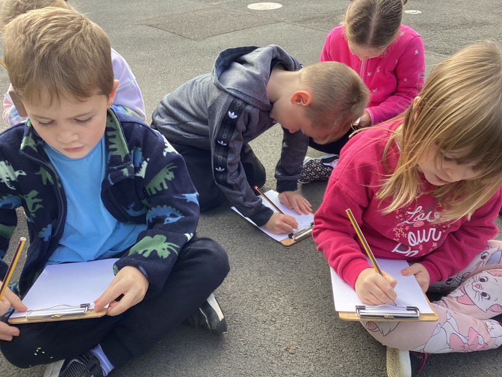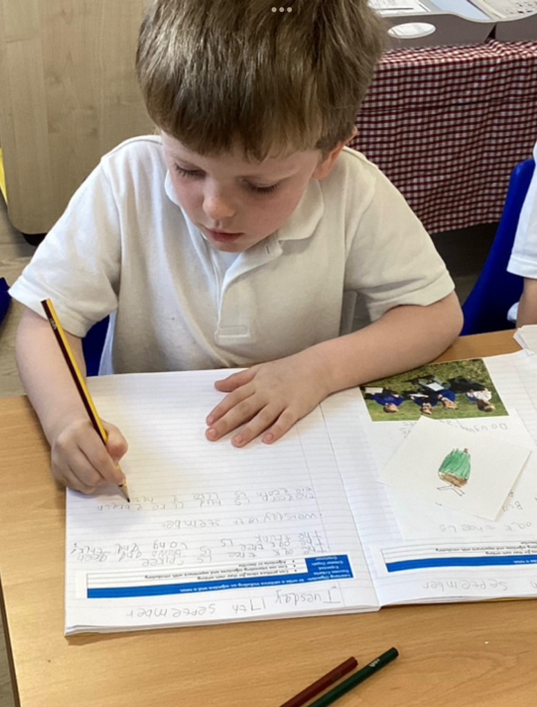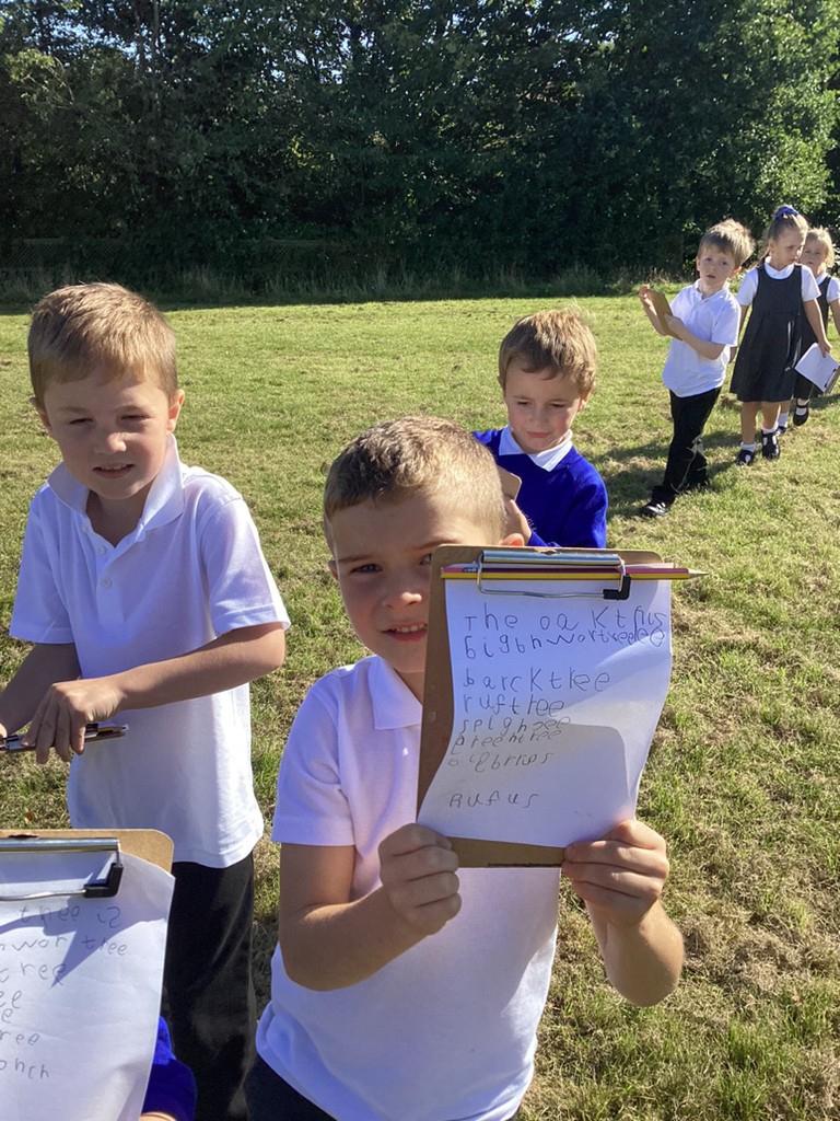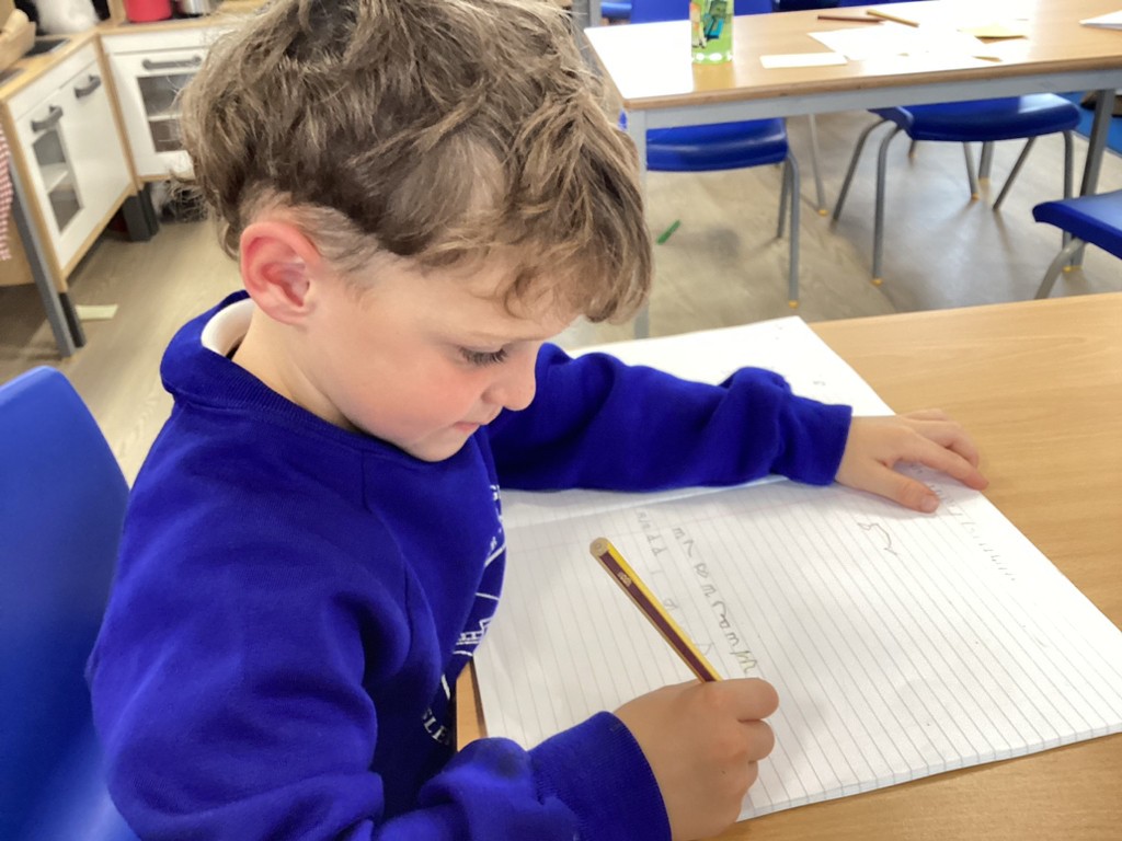 Writing has been happening all over the place this week with Pioneers making signs and filling in tick-sheets with their families during our open morning. We have been out on the field taking inspiration from the trees to build sentences using adjectives. There is great excitement around writing out new letter shapes each day and the progress is wonderful to see.