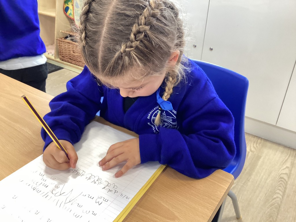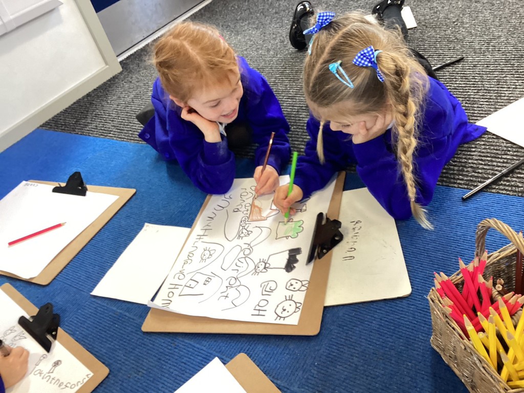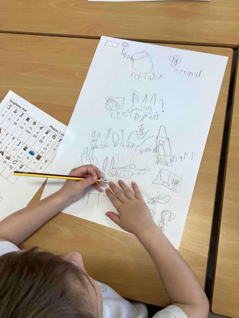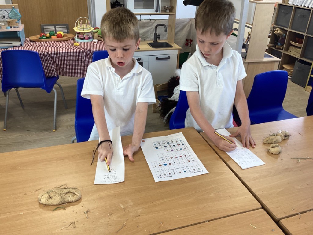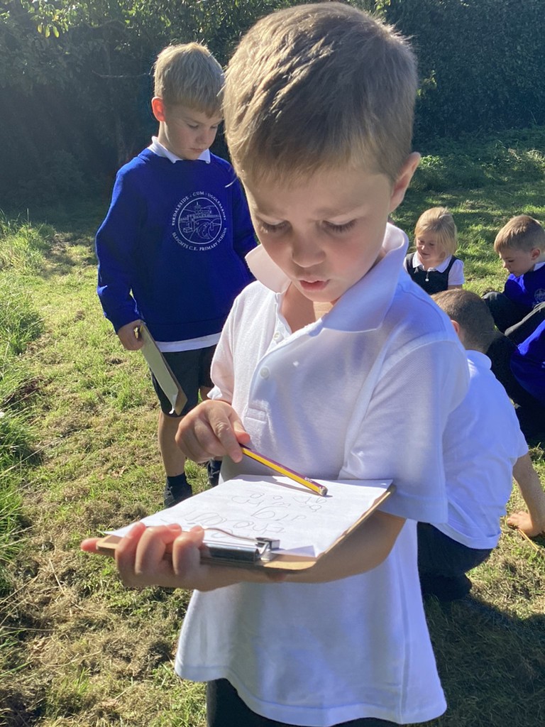 Writing has been happening all over the place this week with Pioneers making signs and filling in tick-sheets with their families during our open morning. We have been out on the field taking inspiration from the trees to build sentences using adjectives. There is great excitement around writing out new letter shapes each day and the progress is wonderful to see.