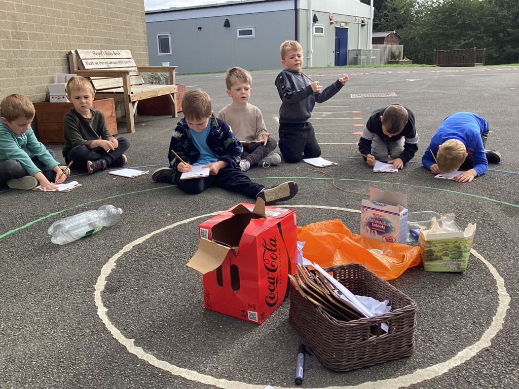 The Pioneers made great use of our magnificent school grounds this week. We took a trip to the forest to look for signs of seasonal change and forage for acorns. There were none! we found a few cups from last year and lots of leaves. We pressed the leaves ready for use later. Apparently trees may be suffering from a drought three years ago or may be tired after a bumper crop last year. We matched colours with our colour cards too. We did some recording of the litter we found to add to detail to our reports on the Millenium Development Goals.