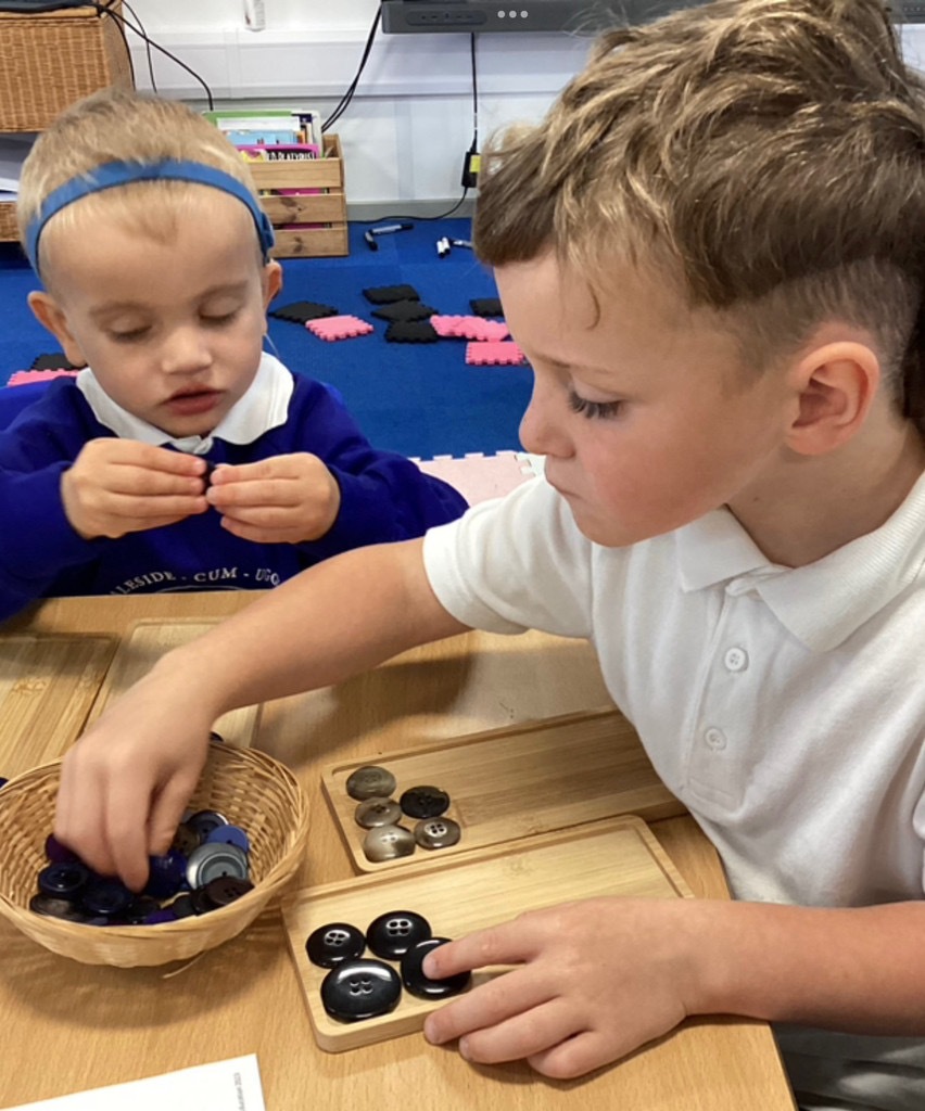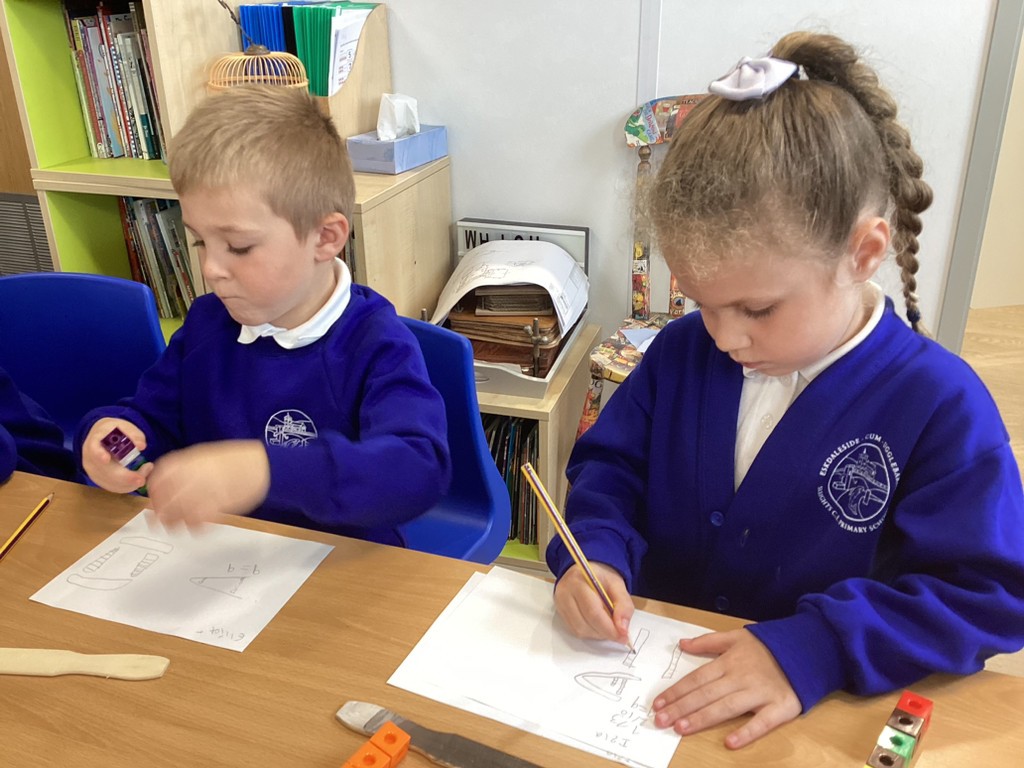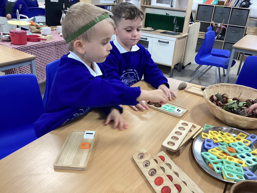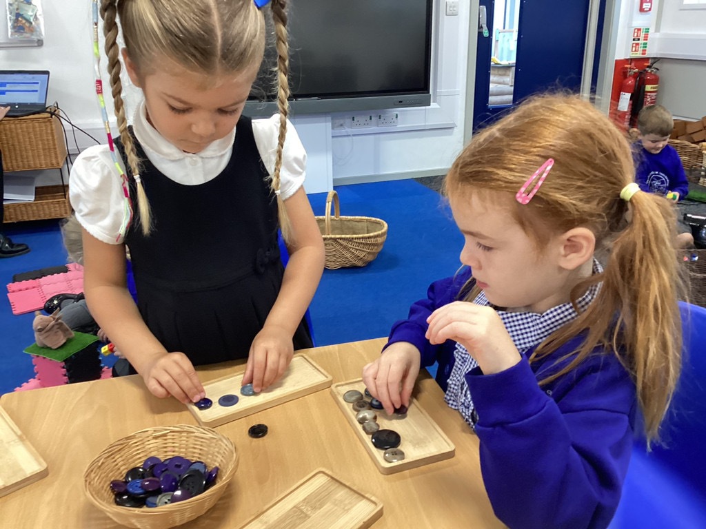 The Pioneers have maths at the centre of everything they do. They are constantly comparing and counting and looking at what is around them. This week we have used butterflies and buttons, blocks and sticks. We have drawn pictures to represent our thinking and tested out new symbols and vocabulary. There is a lot going on.