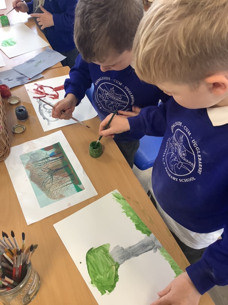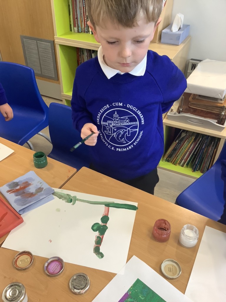 On return to the classroom we looked at Not Lost, a book about a little rabbit who takes risks. We discussed the risks in our forest and how to stay safe. We also did a spot of painting inspired by David Hockney.
