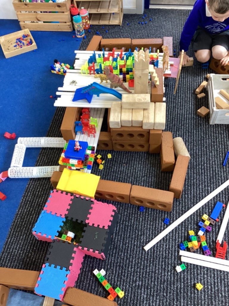 The Pioneers share small spaces and lots of resources to create multi storey buildings and airport runways with moving tracks. They select from a range of loose parts,create fantastic uses for them while sharing this adventure with others. That sharing can be tricky at times and needs careful negotiation.