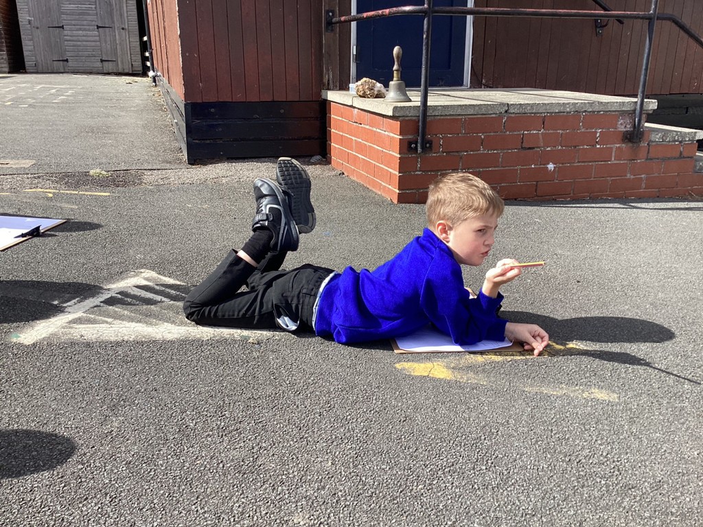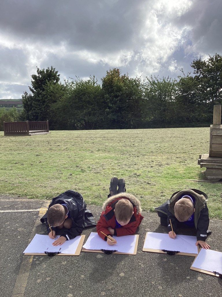 We used an online compass to find out about north, south, east and west and drew some amazing field sketches of what we could see when we looked north. There were lots of questions about what to include and we discussed the things that were always there and the things that moved.