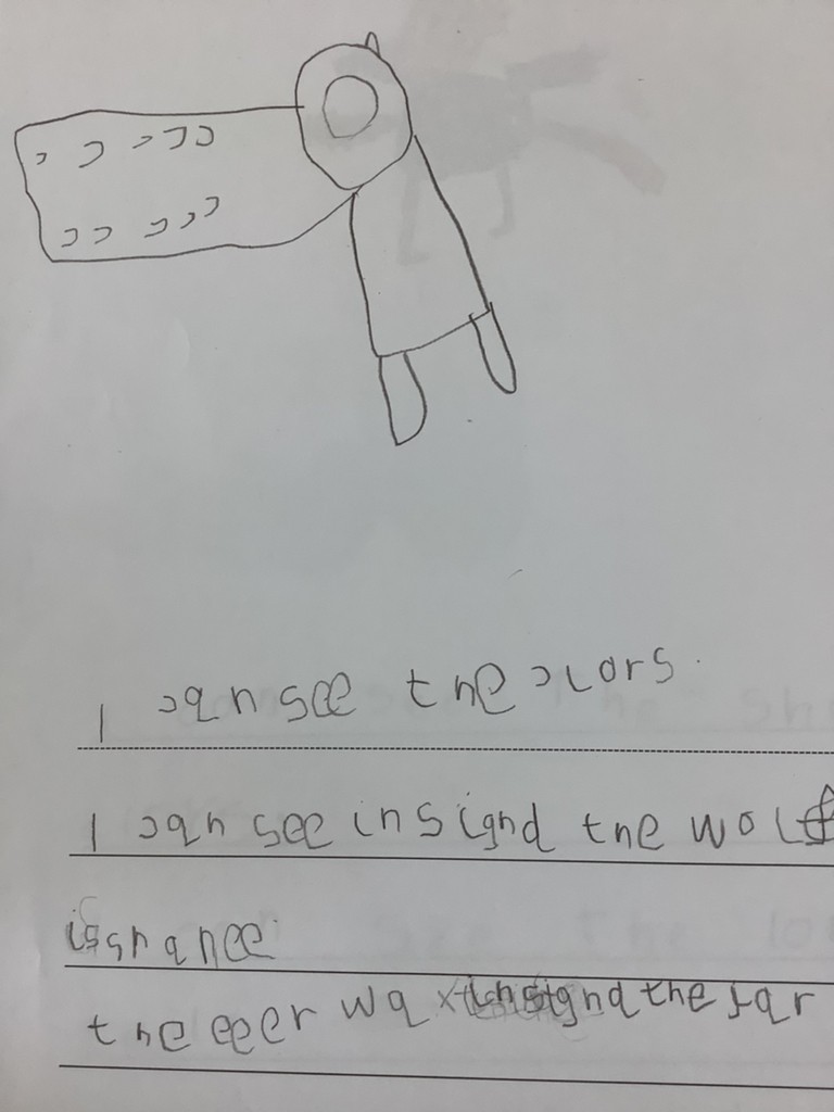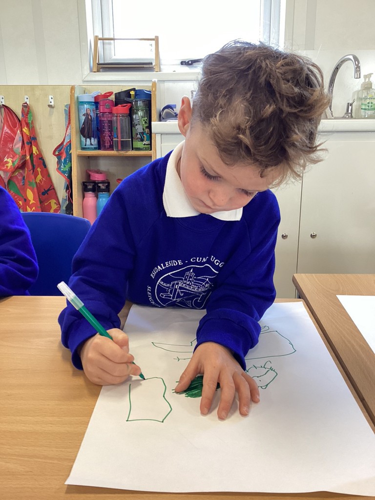 We have been reading about wolves and listening to music with a wolf theme. We read Little Red, a version of the traditional tale where the wolf has his coat removed at the end. The Pioneers made wonderful story maps and wrote lots of wonderful sentences.