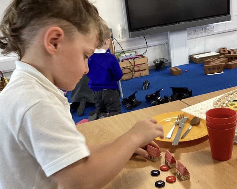 We have been sorting all sorts of things-houses,cutlery,bricks and our favourite gems and buttons.