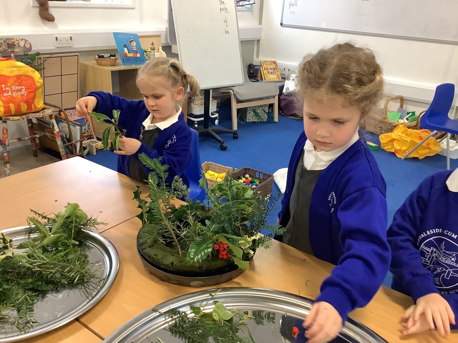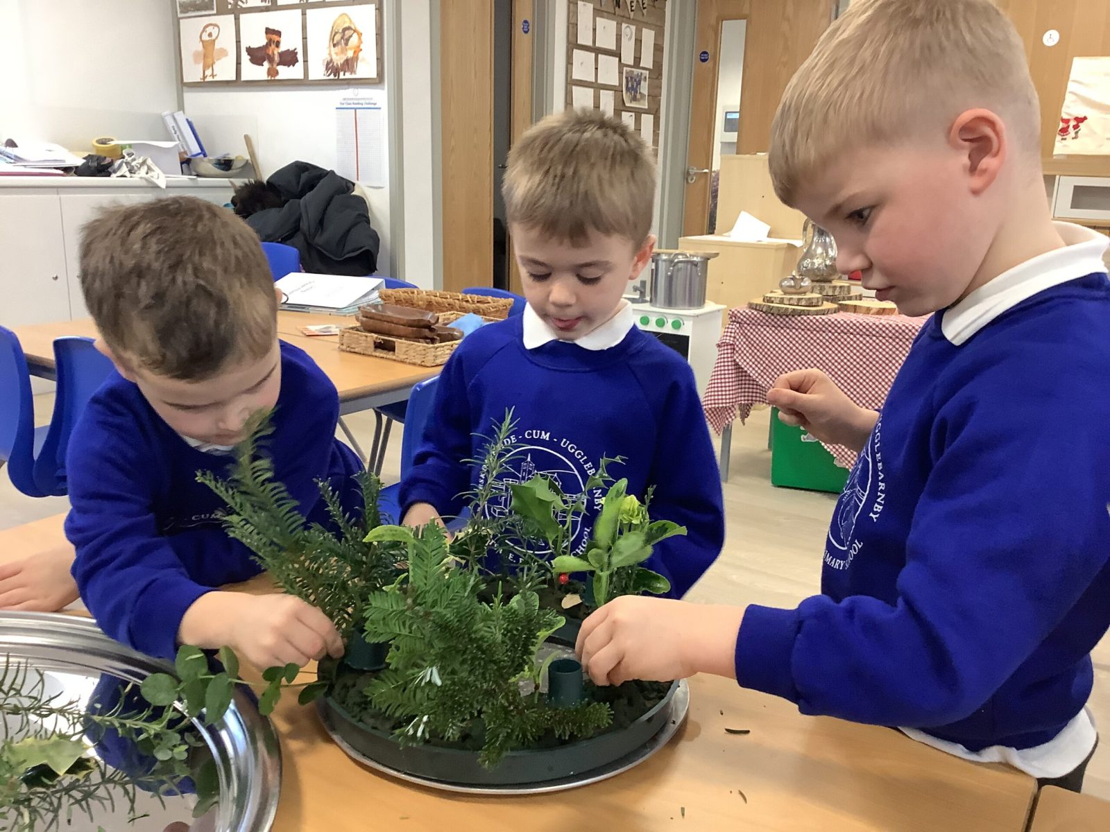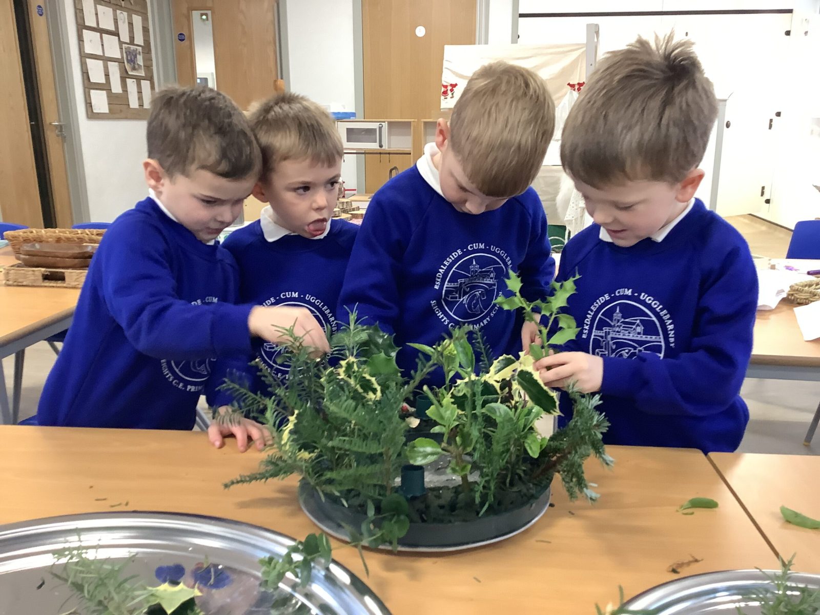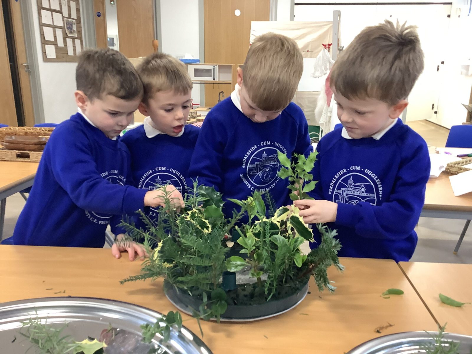 This week the Pioneers discussed their Advent Calendars and we are starting to get a bit excited about Christmas! We looked at our class book,The Path To the Church which details all the events in the Christian Church calendar. We changed the prayer space cloth to purple to reflect the colours seen in church and we will look for these signs of Advent when we visit next week. We then made our own Advent crowns and put in the candles. We discussed the colours and the textures and the hazards of flower arranging.