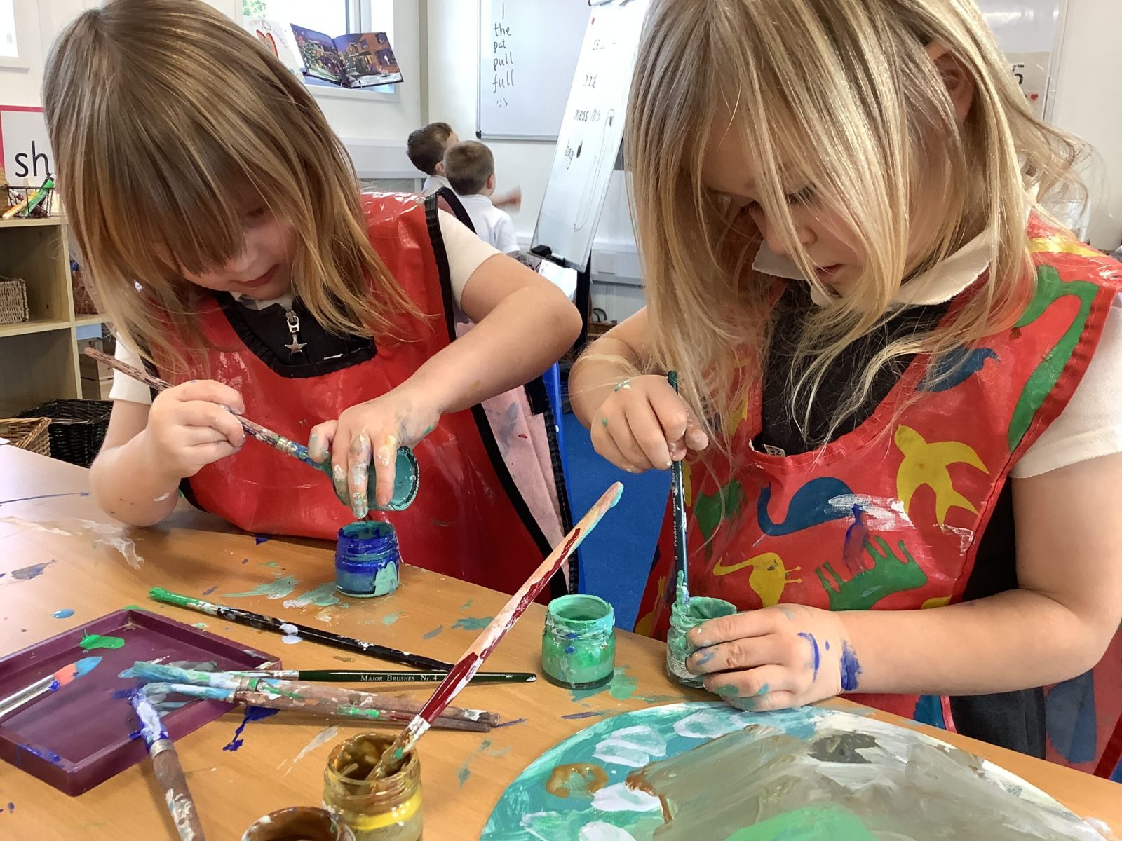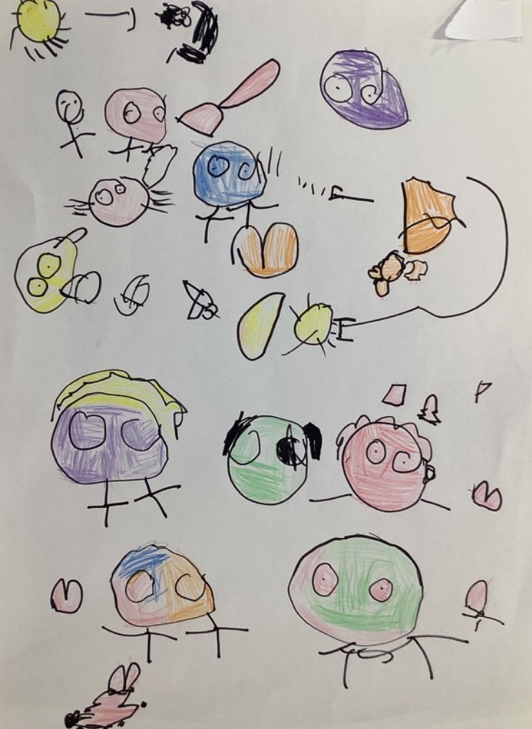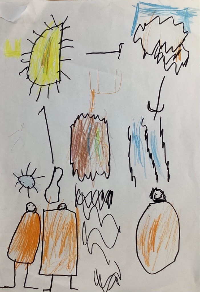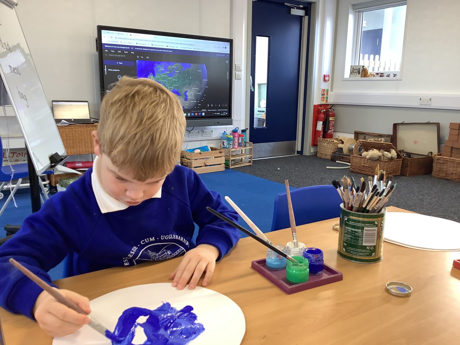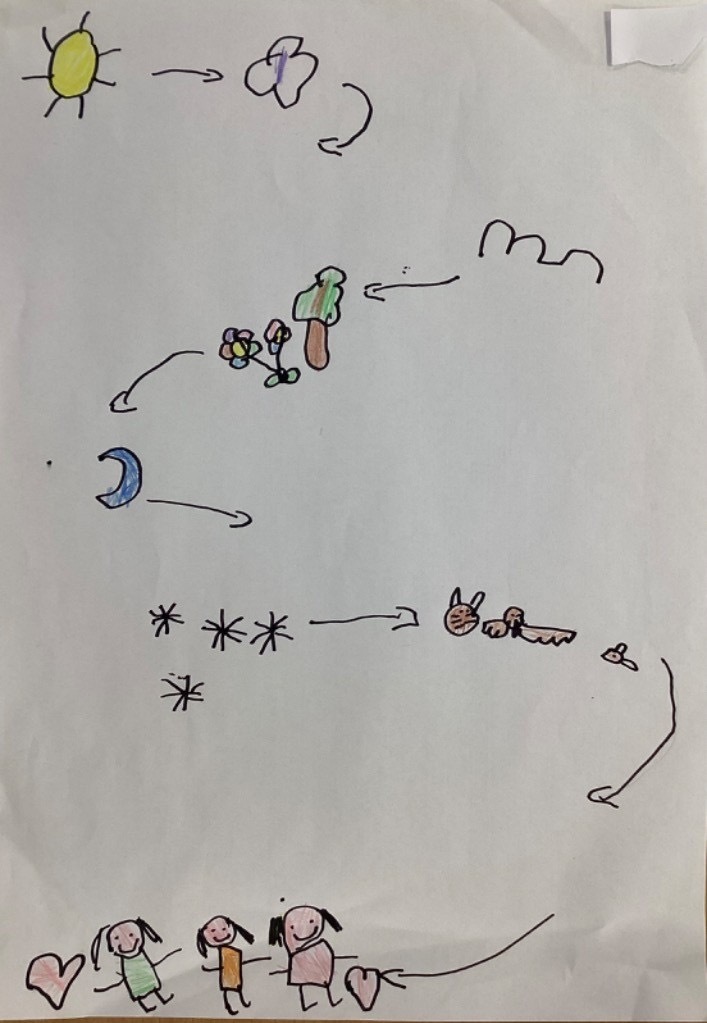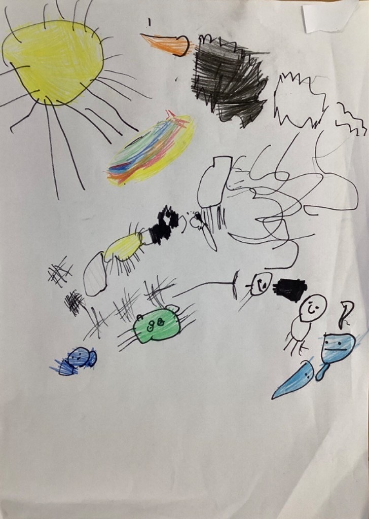 We have read the story of the Creation and retold this with a story map. We have looked at our planet on Google Earth and discussed the colours and what we can see. The clouds are very visible. The white is the ice and the snow and the green is the land. The Pioneers also noticed that some of the land is different colours and knew that this was because some places are hot and dry. The Pioneers then recreated what they saw and talked about what they had painted. They enjoyed mixing and naming the colours too.