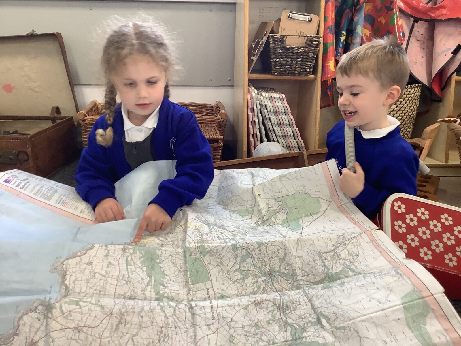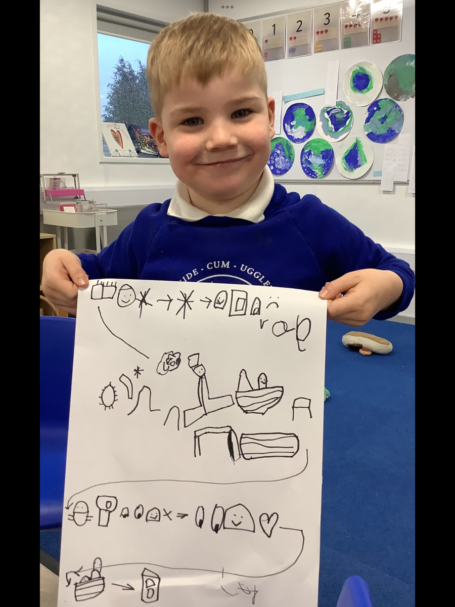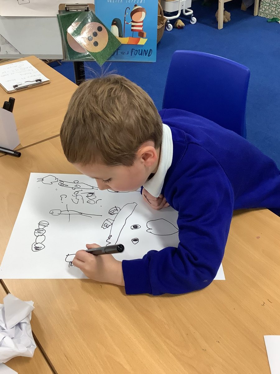 This week we have been reading Lost and Found and the playing has been wonderful. A boat and a selection of maps have been added to the classroom and these have been very useful. The Pioneers wrote lists of what to pack for their journey. The played with the animals of the antarctic. They looked at globes and maps and atlases and Google Earth to spot the icy land masses. They were very interested in what a harbour was. We talked through the story map adding vocabulary and even sentences. The Pioneers are spotting punctuation all over the place.Mrs Gurney worked with the ipads and made videos of ourselves retelling the story.
