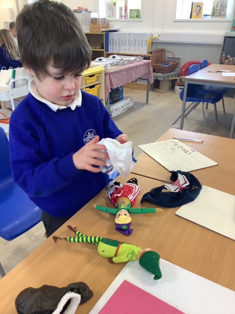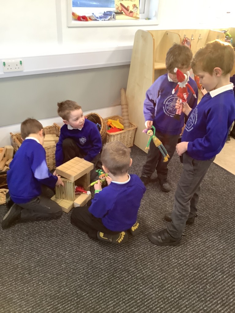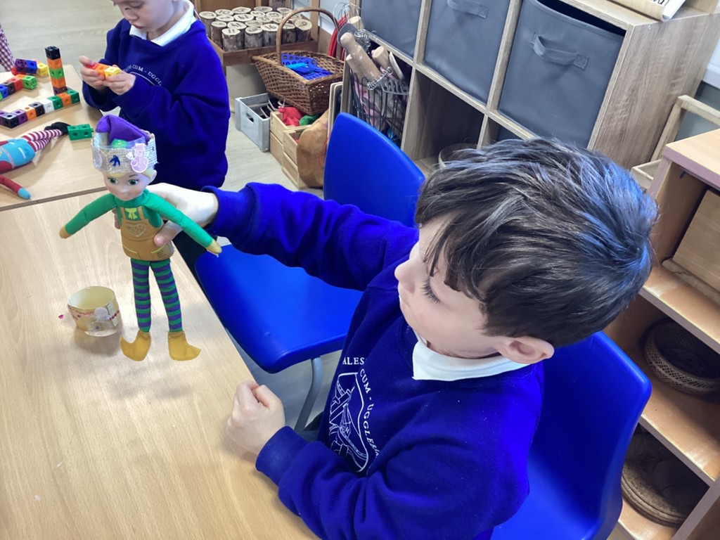 We have made little bags to contain boots and crowns and painted pictures to annotate. The Pioneers have built thrones and used the elves to help when finding one more in maths. The Pioneers are writing lists of elf names and elf items and this is so wonderful.