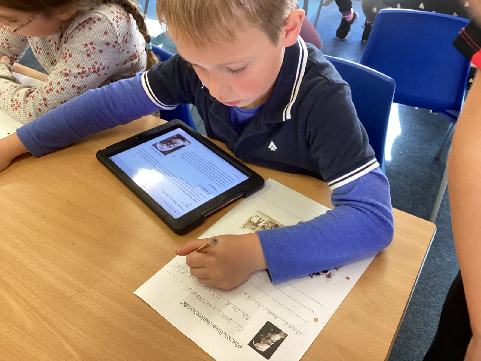 Back in the classroom, we used iPads to research how Whitby marketplace had changed overtime. We discovered that Elizabeth Botham had sold her bread from a basket in the marketplace before opening her first shop. We also found out that whale blubber had been sold to make oil. Most shockingly we learned that urine was sold at the marketplace, which was used as a cleaning and dyeing aid – we were certainly glad to live in Whitby ‘now’ rather than ‘then’.