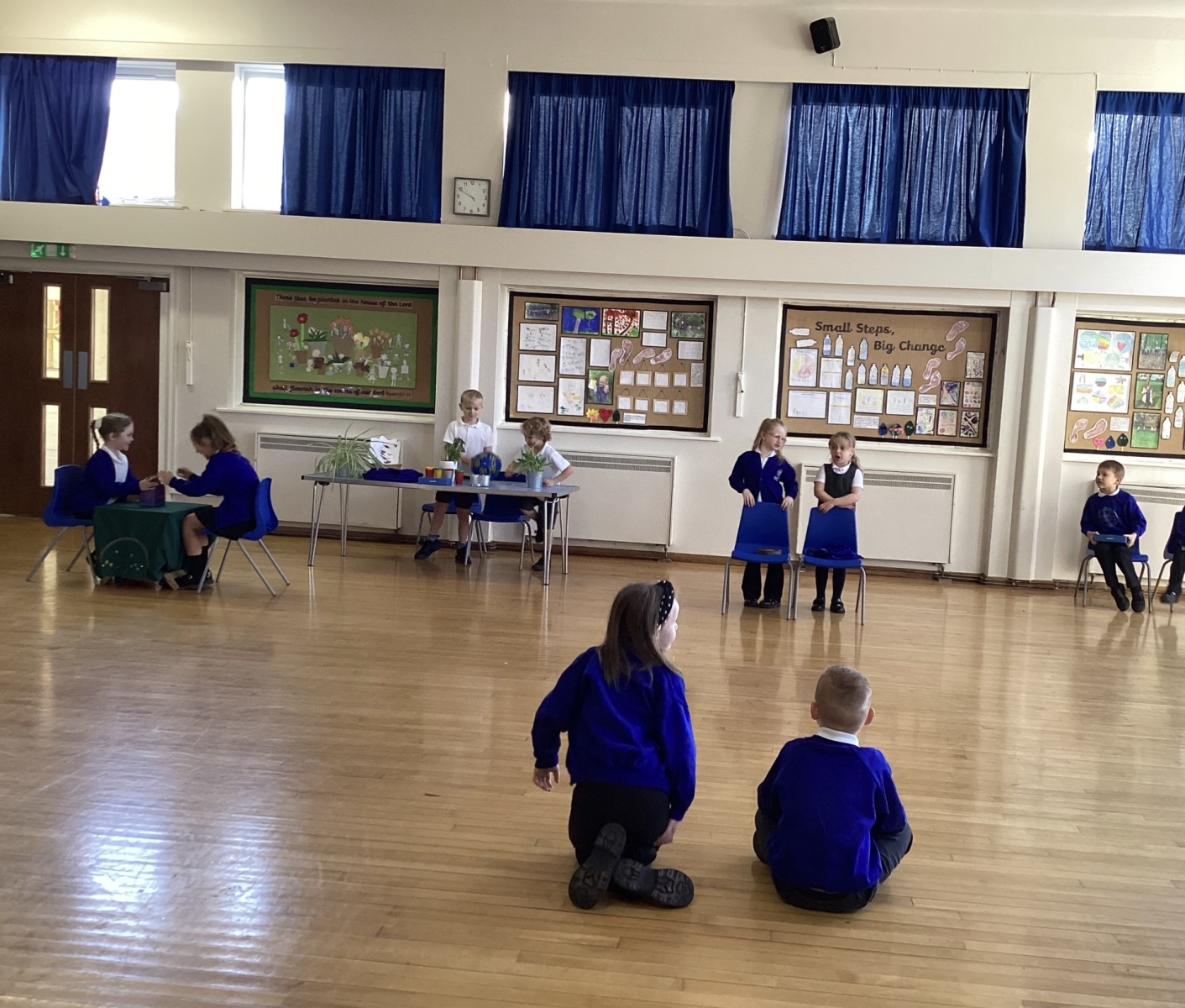 On Monday we kicked off the week with a drama session with Louise from Red House Theatre. The session supported our history topic of Whitby now and then wonderfully. We used our imagination to visit Whitby in the past. Through movement, we turned ourselves into the steam train, the Abbey and we even became sellers in the old marketplace.