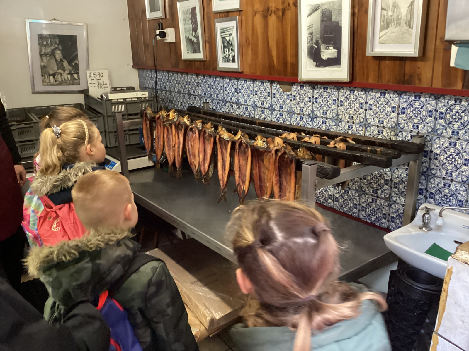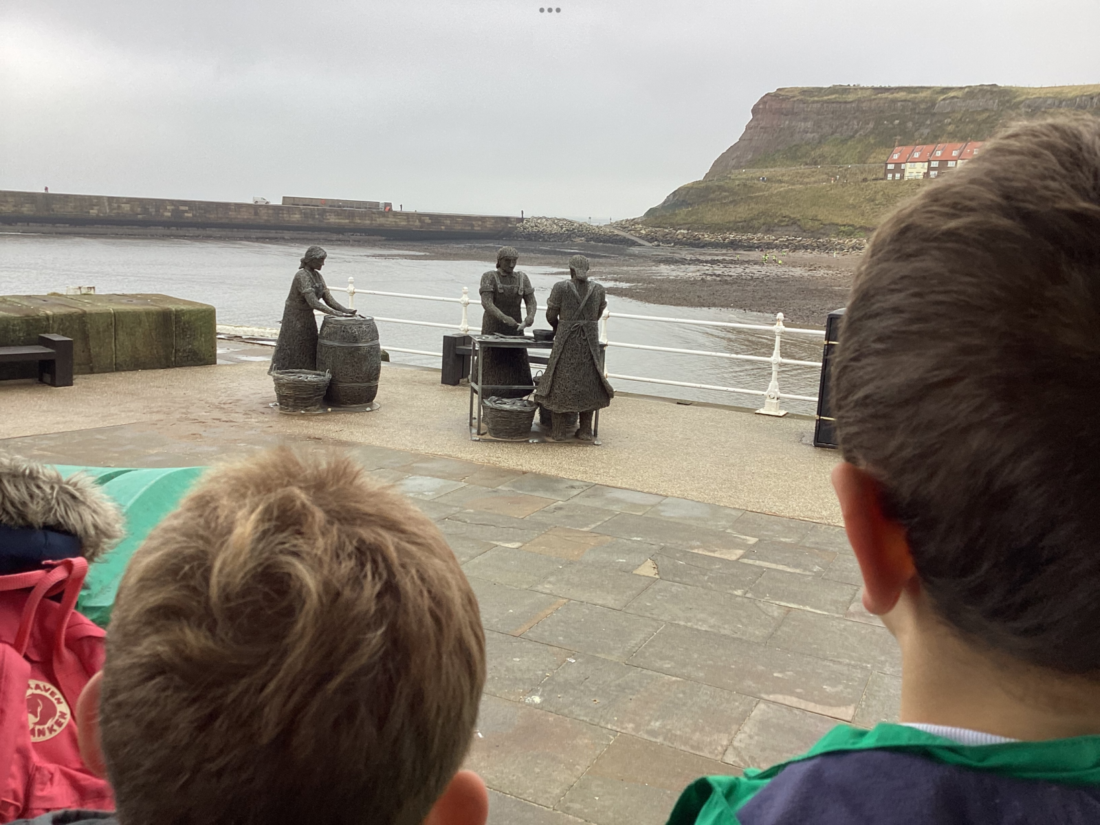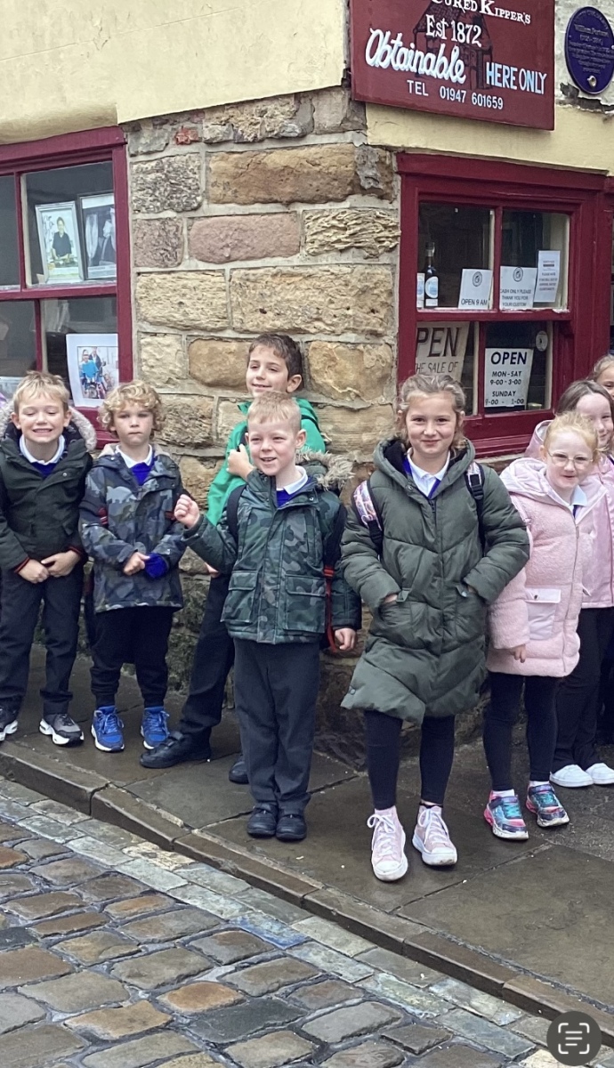 On Wednesday we visited Whitby and were able to being all our learning to life. We visited Fortune’s Kipper shop, a shop that we had seen on Frank Meadow Sutcliffe’s photographs of old Whitby. We stopped at the marketplace and were able to use our imagination to become market traders again – this time in the actual same place. We spotted many Whitby Heritage Sculptures around the town, which gave us an insight into Whitby from the past – we particularly liked the ‘Herring Girls’ sculpture near the bandstand. We walked up to the park, where we visited Whitby Museum. The Museum was fascinating, we saw Frank Meadow Sutcliffe’s gallery of photos and delighted in seeing many local artefacts.